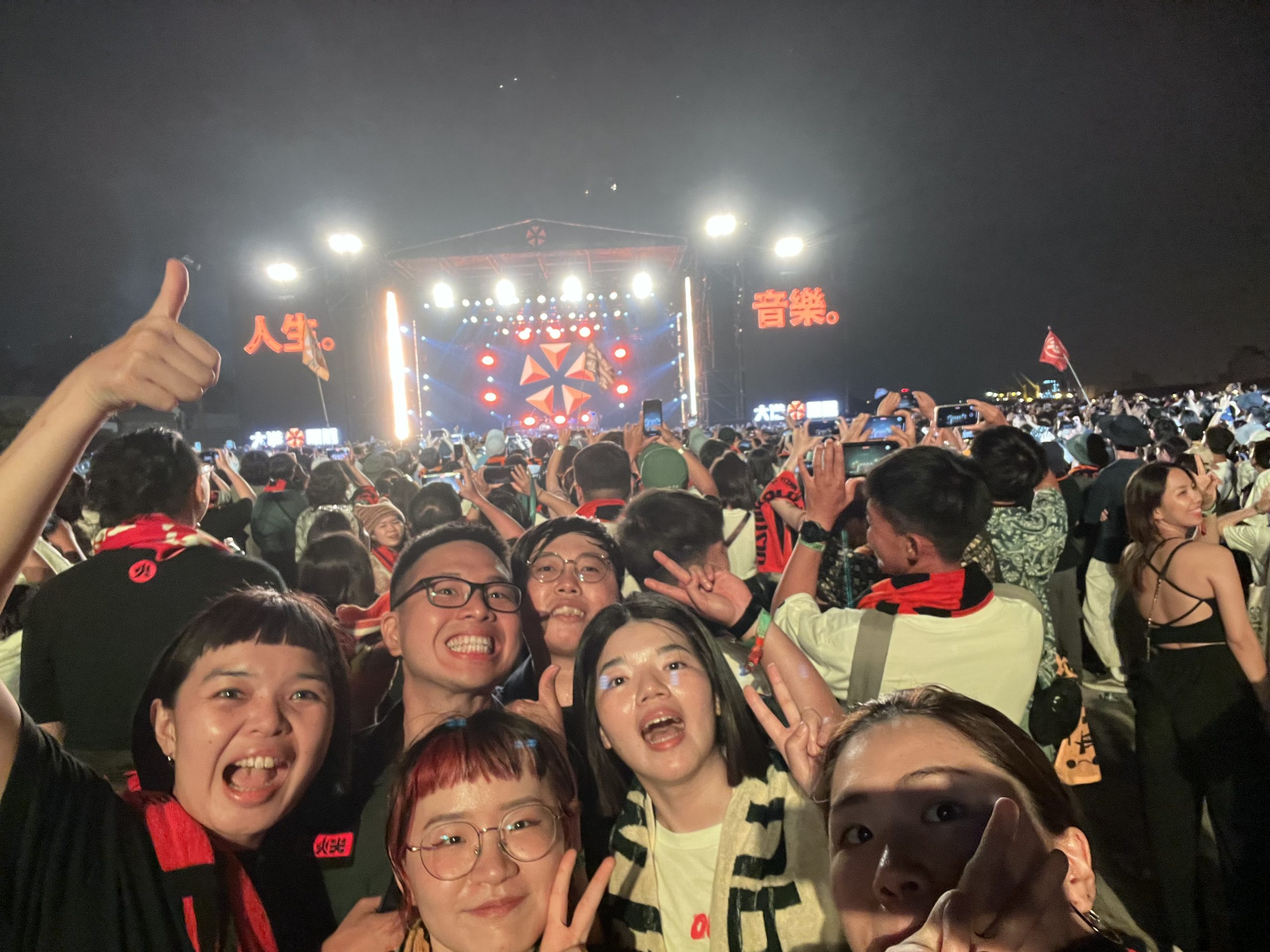 除了基本的搖滾樂團編制,ALI的演出還帶了薩克斯風手、小號手、合聲/合唱姐姐(超美超會唱🥹),多樣樂器和人聲完美結合,加上主唱今村怜央穩到不行的唱功,整座南霸天都high到沸騰!全場隨著音樂大聲合唱、愉快地擺動身體,氣氛超級無敵棒,今年大港最爽表演非ALI莫屬!演唱〈樂園放浪〉時我彷彿看到五条悟在我眼前跳舞餒~~🤞🏼(幻視?)