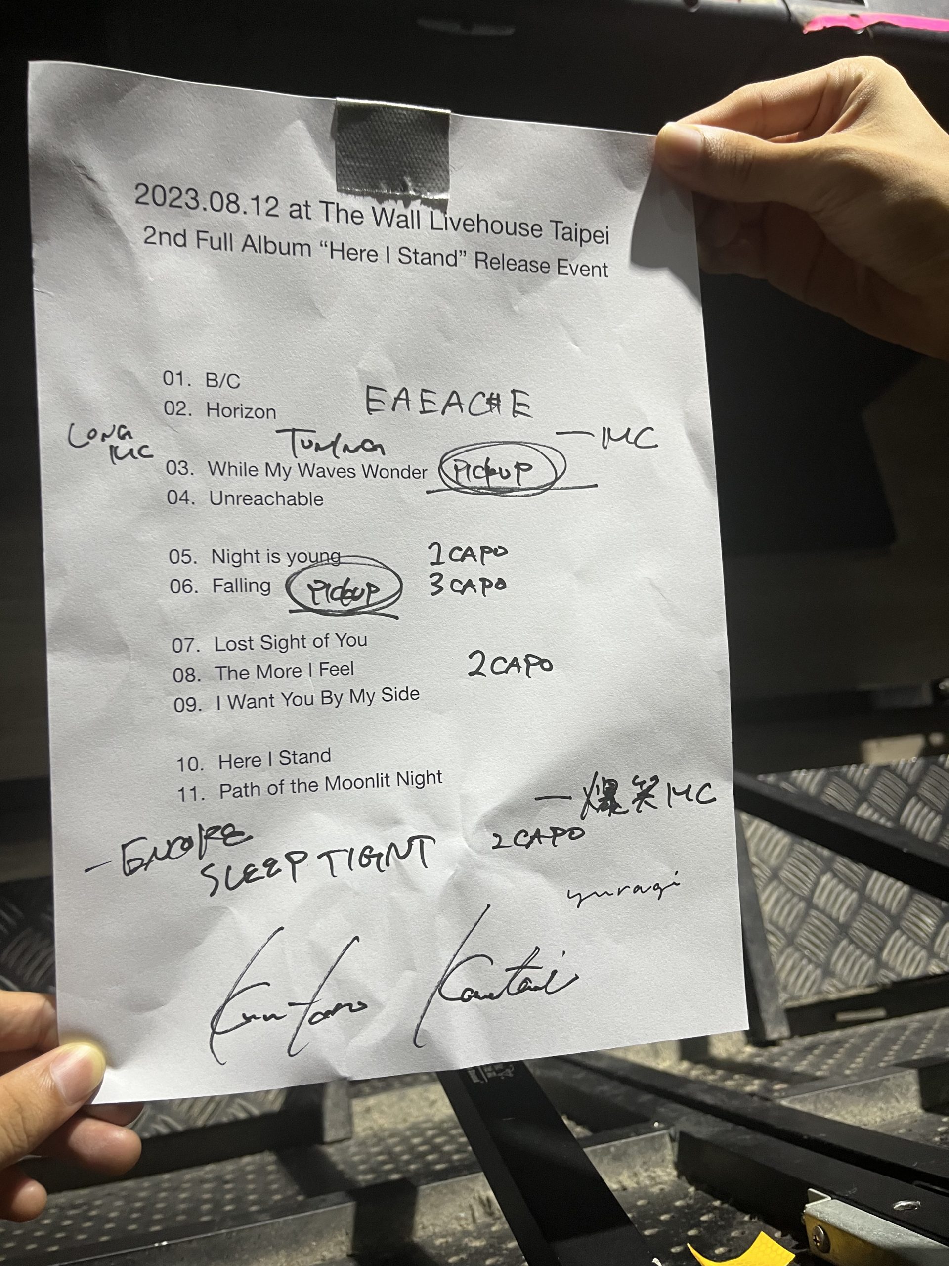 結束後我本來要拿 setlist,不過被其他人搶先ㄌ,這是我聽團第一次看到有這麼多筆記的 setlist,還有簽名簡直太讚!!