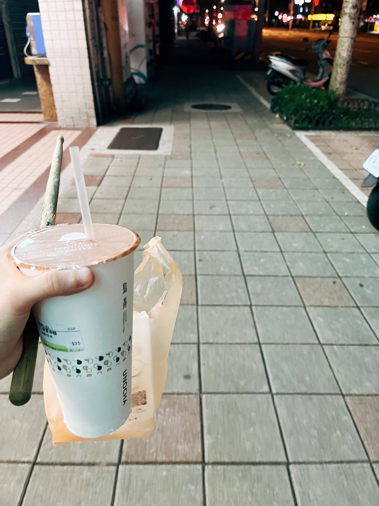 從 The Wall 出來後,跟嘎錦碰面,他因為晚餐鹹酥雞吃太飽ㄌ、就從他家中正紀念堂那邊一路散步到公館。我久違地去公館夜市吃臭豆腐(又換老闆了,但一樣好吃,阿姨很客氣又可愛 ),還買了地瓜球(新開的一家,好好吃!)和烏弄,就這樣邊吃邊閒聊,和嘎錦沿著羅斯福路走回他們家。