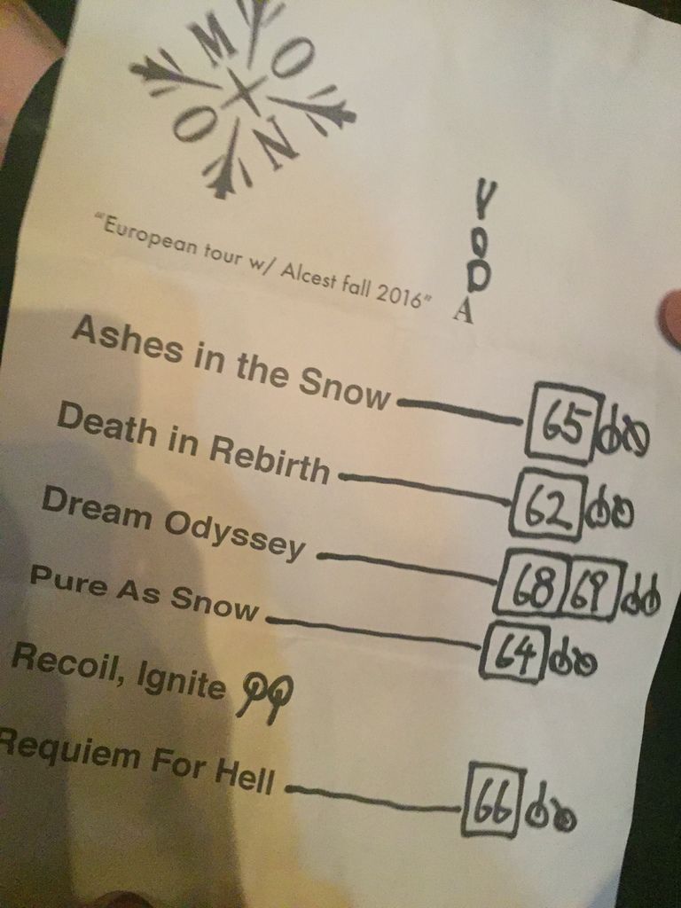 Mono表演完,後面兩個大叔瘋狂地要找樂手拿setlist,於是整個人壓到第一排、把我們夾在欄杆和他們之間,在我耳邊狂叫setlist setlist!!!