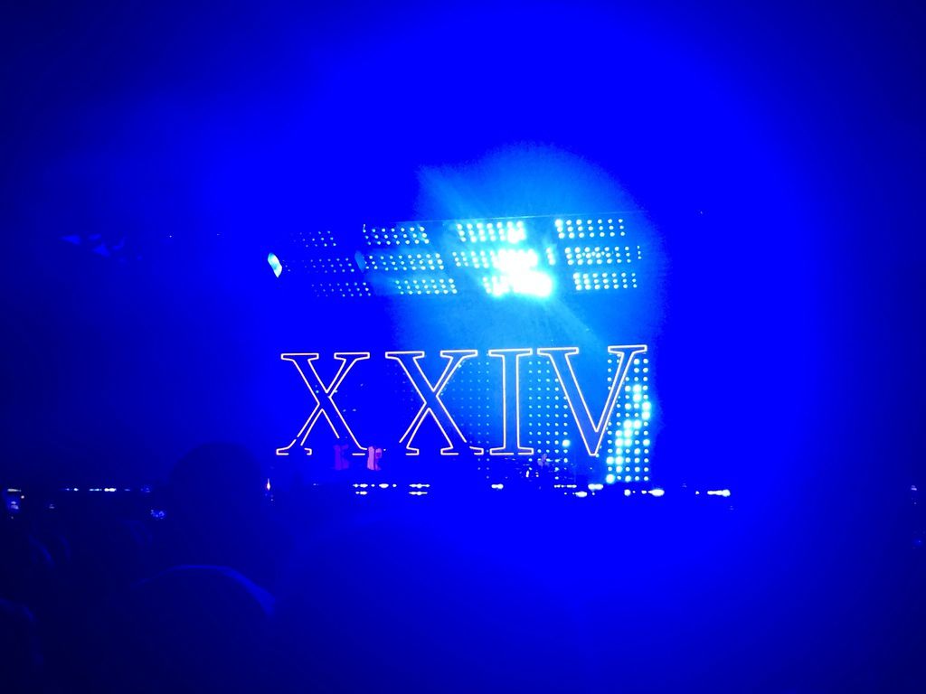 鏘鏘鏘——華麗麗的螢幕打出了XXIV這串數字,也就是這次專輯與巡迴的主題The 24K Magic,Bruno Mars來啦!!!