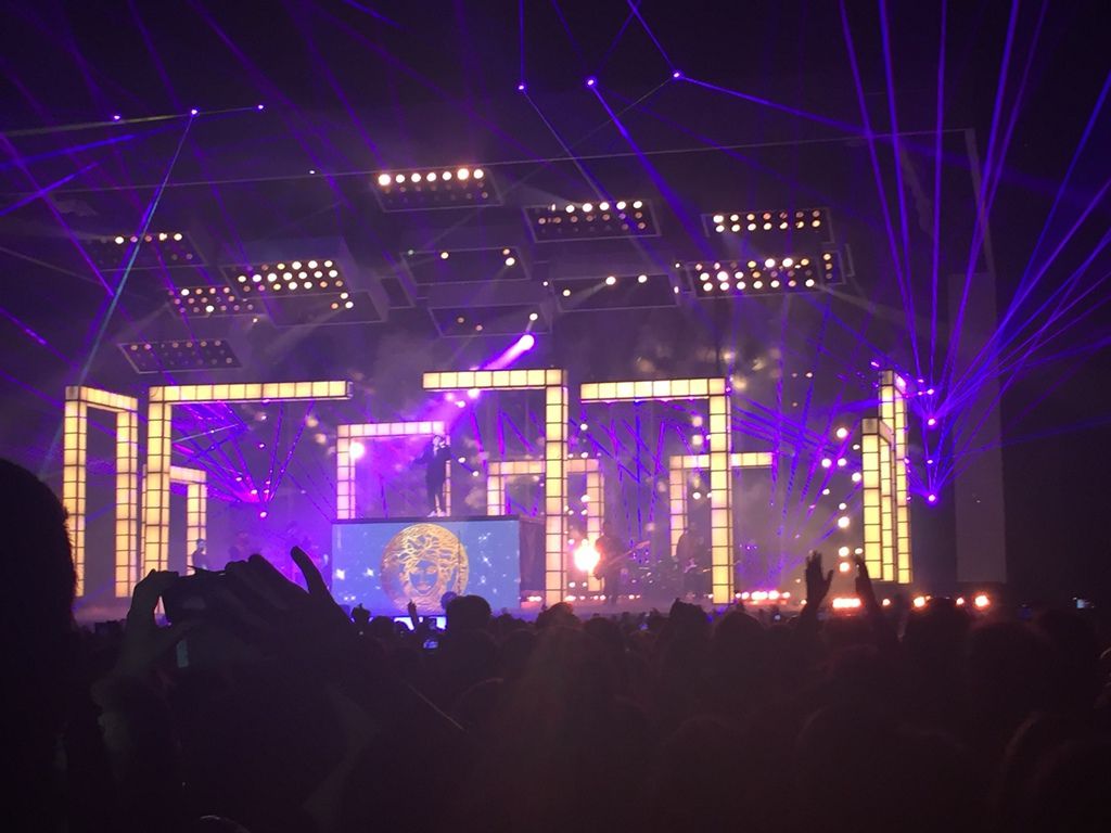 一路塞了下車,在停車場停好車後還在車上讓祕書吃了一下kebab(他很辛苦捏,一下班就開車載大家來XD)。最終實際抵達arena現場,也是七點半後的事情了。我們看一樓平面的人並沒有想像中多,可能大家都在等九點Bruno開唱後才要進來吧,於是就同樣悠哉地晃到場館後方買個可樂和酒XD