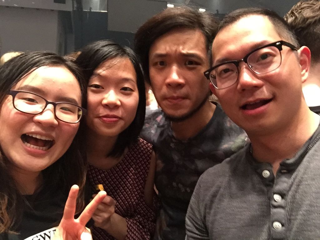 在出口卡了大概15分鐘才總算走出Arena,和主音合照時後面出現一個可愛的photobomber