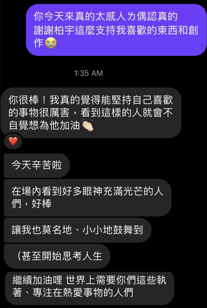 話雖如此,回家後我還是和室友小po一起整理刊物卡片、一起看劇買夜市吃晚餐,期間還聊了大概4小時的天,說話量應該等同於我一整天在場次說的量⋯⋯媽呀我的喉嚨!