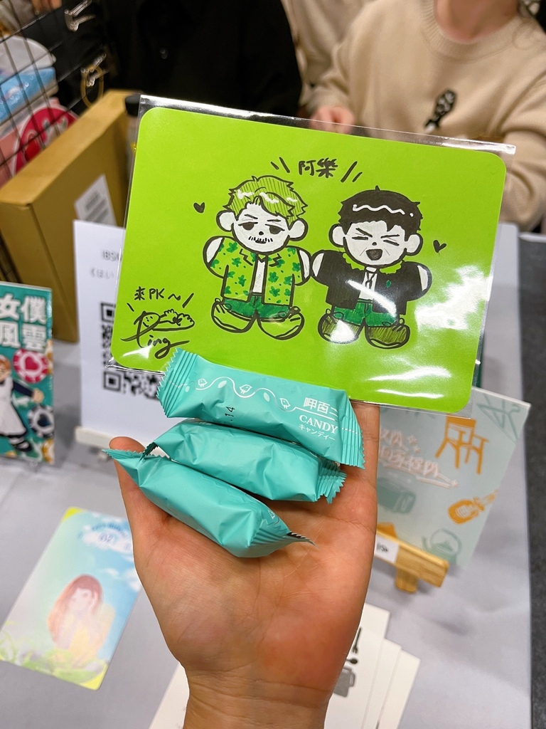 這天跟江江在河道上講了一些北七幹話,後來還前往人家攤位想比拚腕力,結果意外獲得一張他剛畫好的卡片!齁,過分,太可愛了吧是roosmav嗚嗚,謝謝江!!