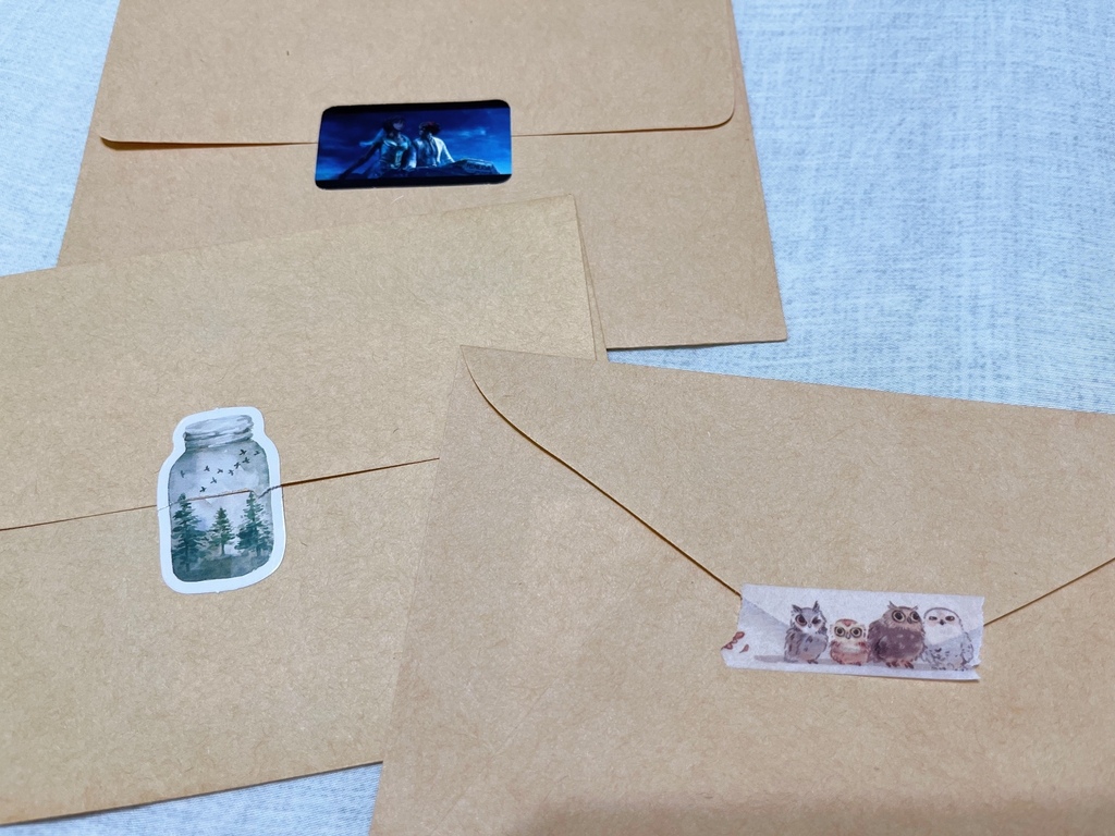 是說回家整理卡片時,發現大家都用了很能代表自己的貼紙/膠帶彌封信件: