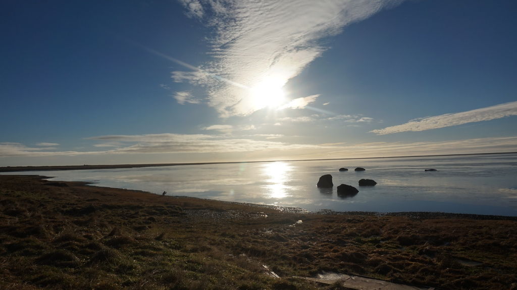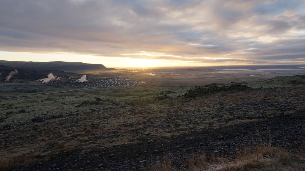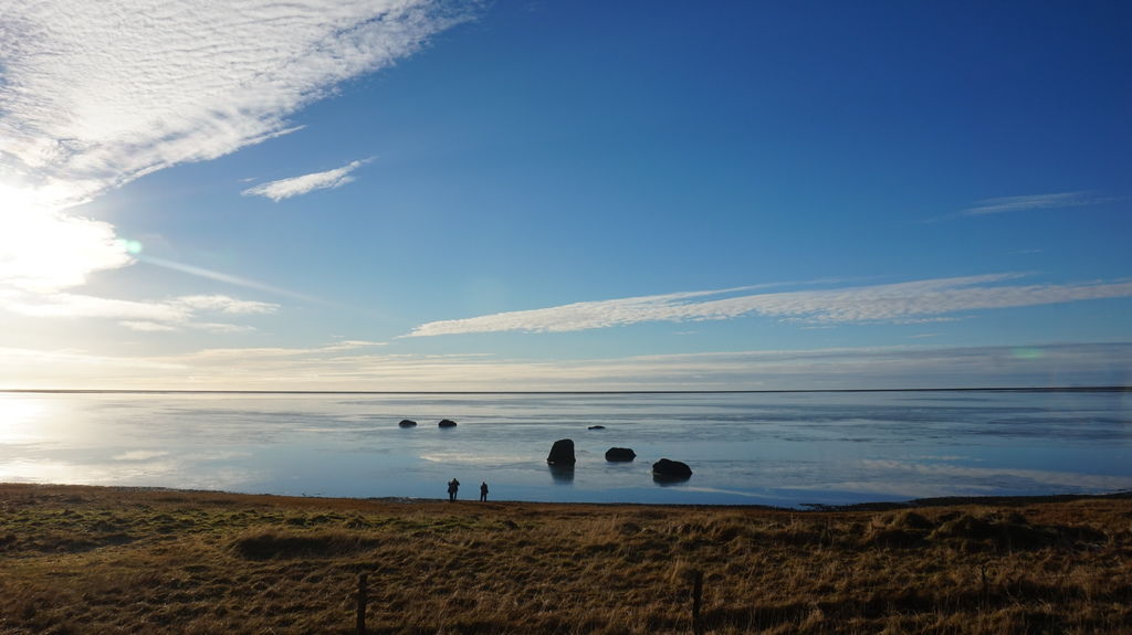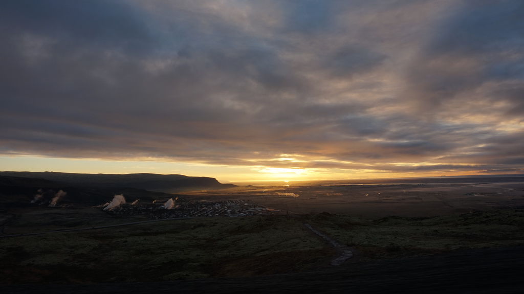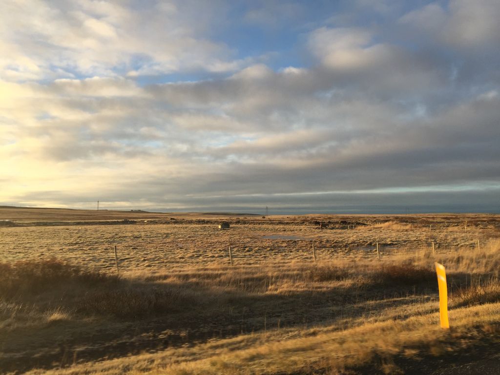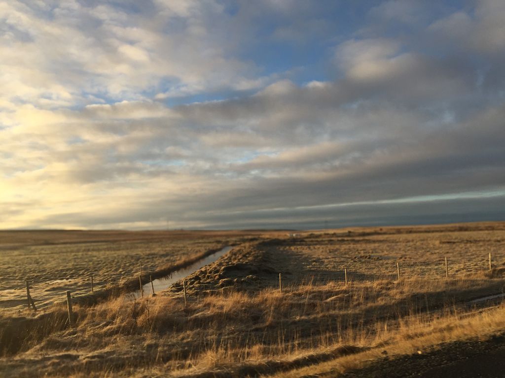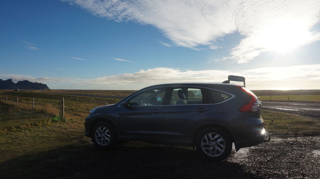 路經Sudurland一帶時,看到路邊有個類似小型停車場的空地平台,上面有幾台轎車和一台旅行團的車子停在那。正當好奇這裡是什麼景點時,抬頭一看東邊天空的太陽和雲影,瞬間懂了!