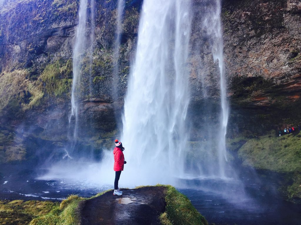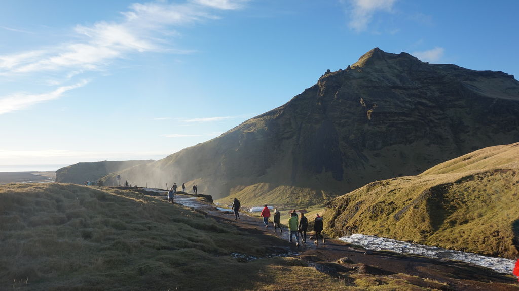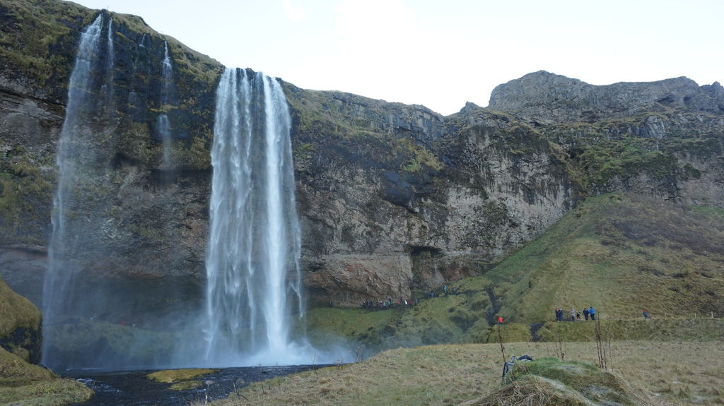 又開了一段時間,就來到了我們路途上遇見的第一個所謂「景點」之處,是被暱稱為「水濂洞瀑布」的Seljalandsfoss。