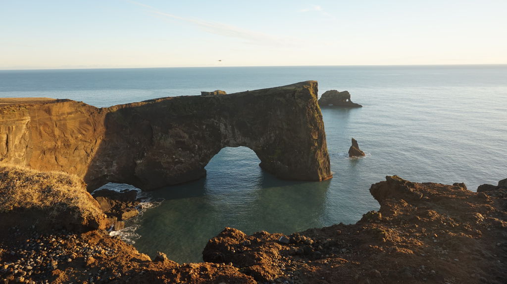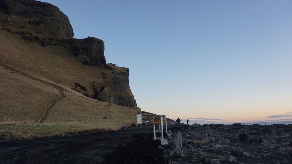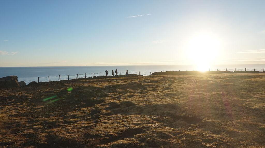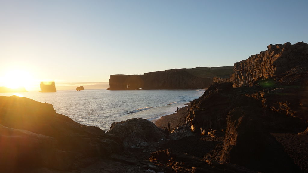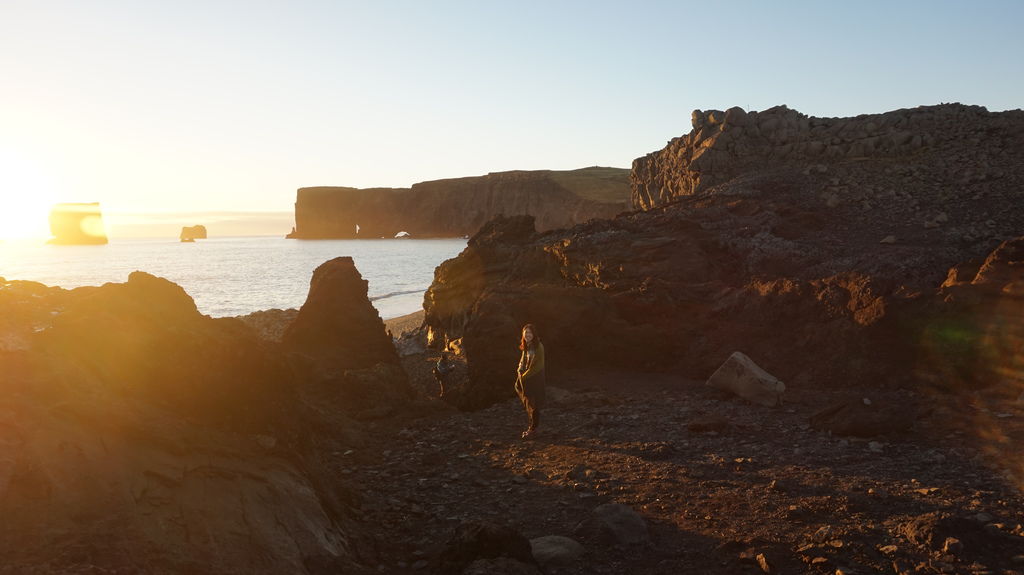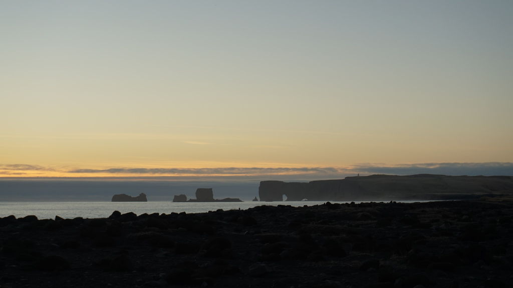 另一邊太陽下山的地方,又再次看見剛才的海蝕拱門Dyrhólaey在餘暉中靜靜矗立著。