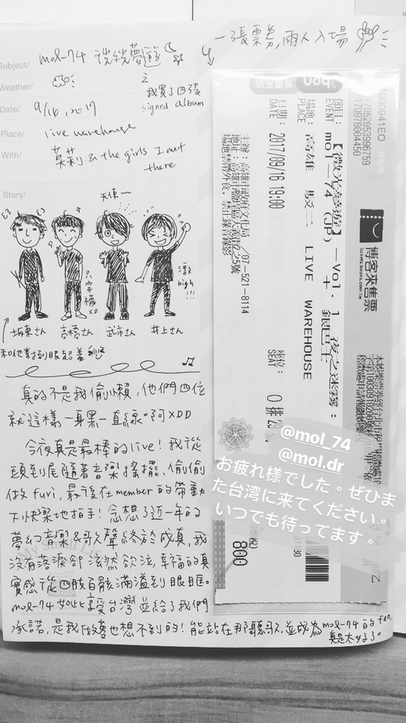 這晚mol-74的MC比我預期的多上許多,看著他們從一開始的害羞到後來整個放開、與大家分享來台的趣事。甚至在LIVE的最後和SNS貼文上,都向我們承諾一定一定會再來台灣,就覺得感動萬分