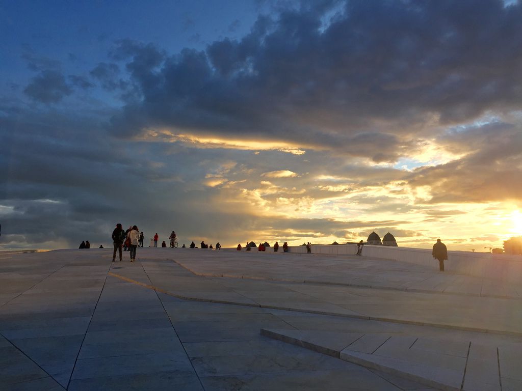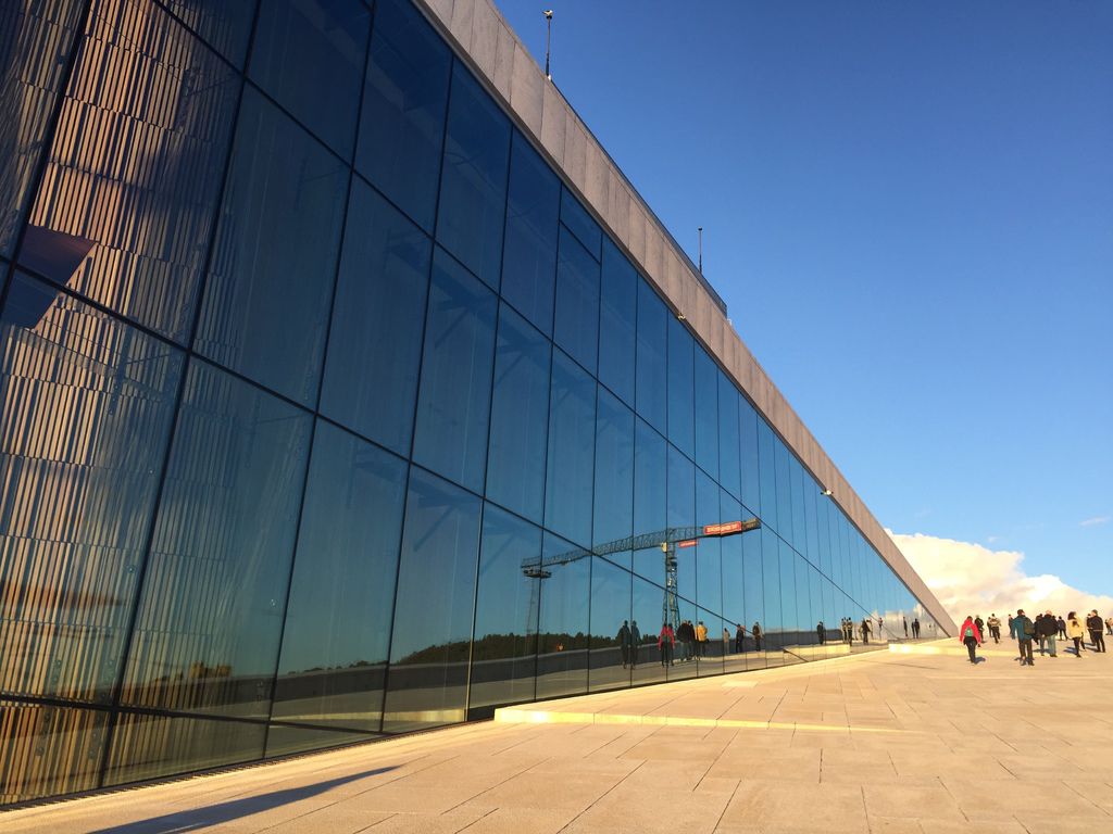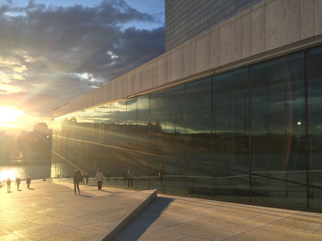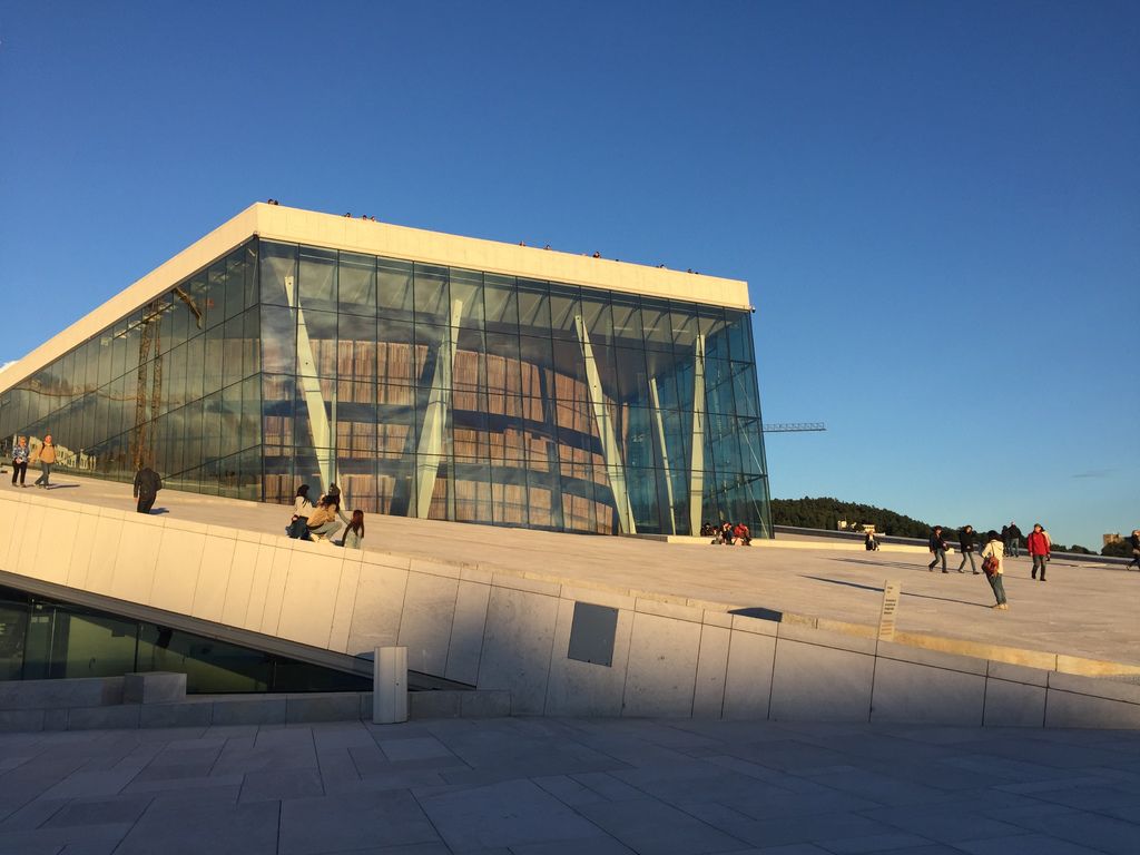 奧斯陸歌劇院(Oslo Opera House)竣工於2007年,08年開幕,坐落於市中心旁的奧斯陸峽灣(Oslofjorden)中,遠看像是一塊漂浮在海灣中的浮冰,反射著末夏的歐陸陽光、映照出這座城市的模樣。