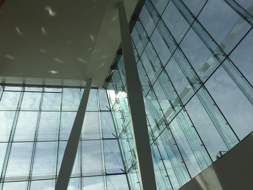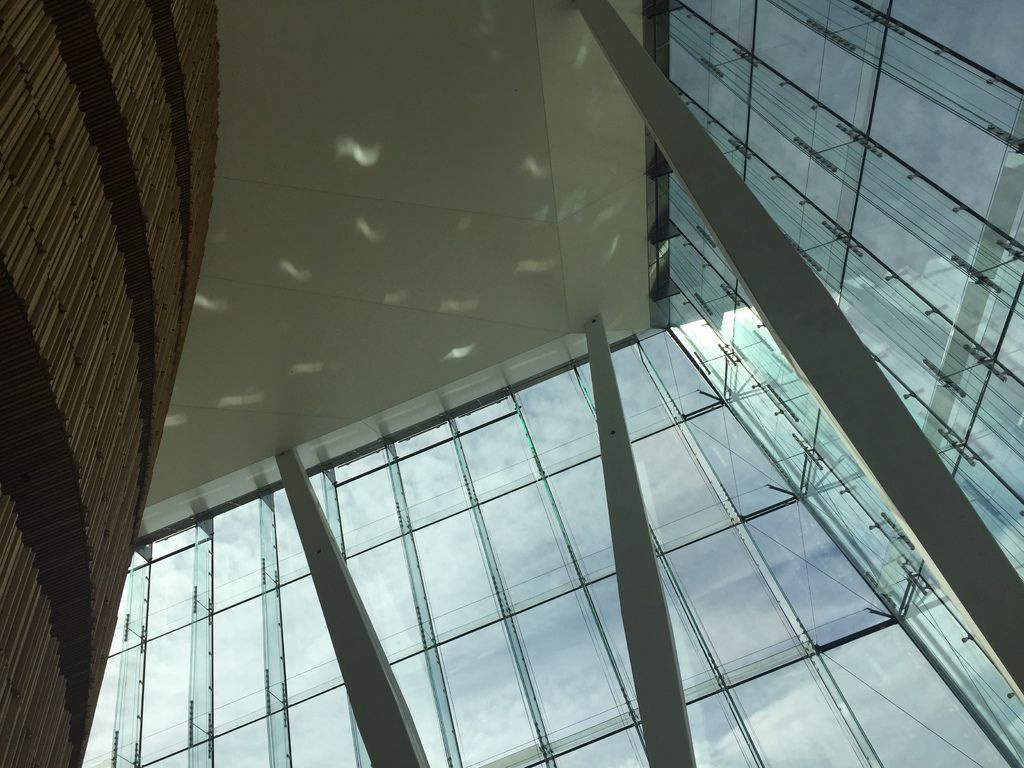 歌劇院內部採光良好,從屋頂到落地窗都的大面積玻璃讓陽光迤邐而下。穿越由橡木製成的樓梯、扶手與中央展演廳外圍後,我們看到了許多在歌劇院外觀難以窺見的內部風景。