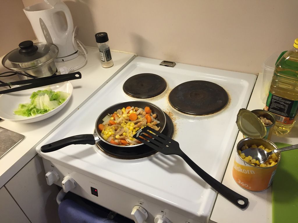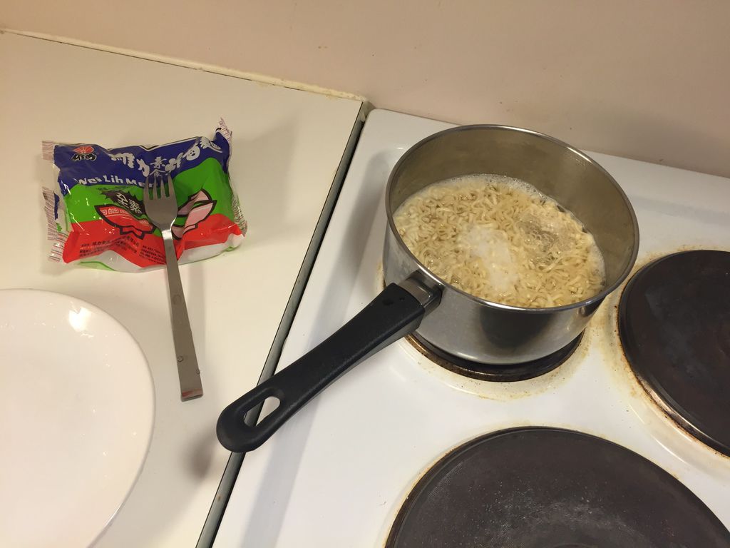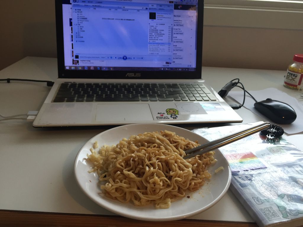 思考了一下,把我唯一帶來的一包維力素食炸醬麵拆開來吃了