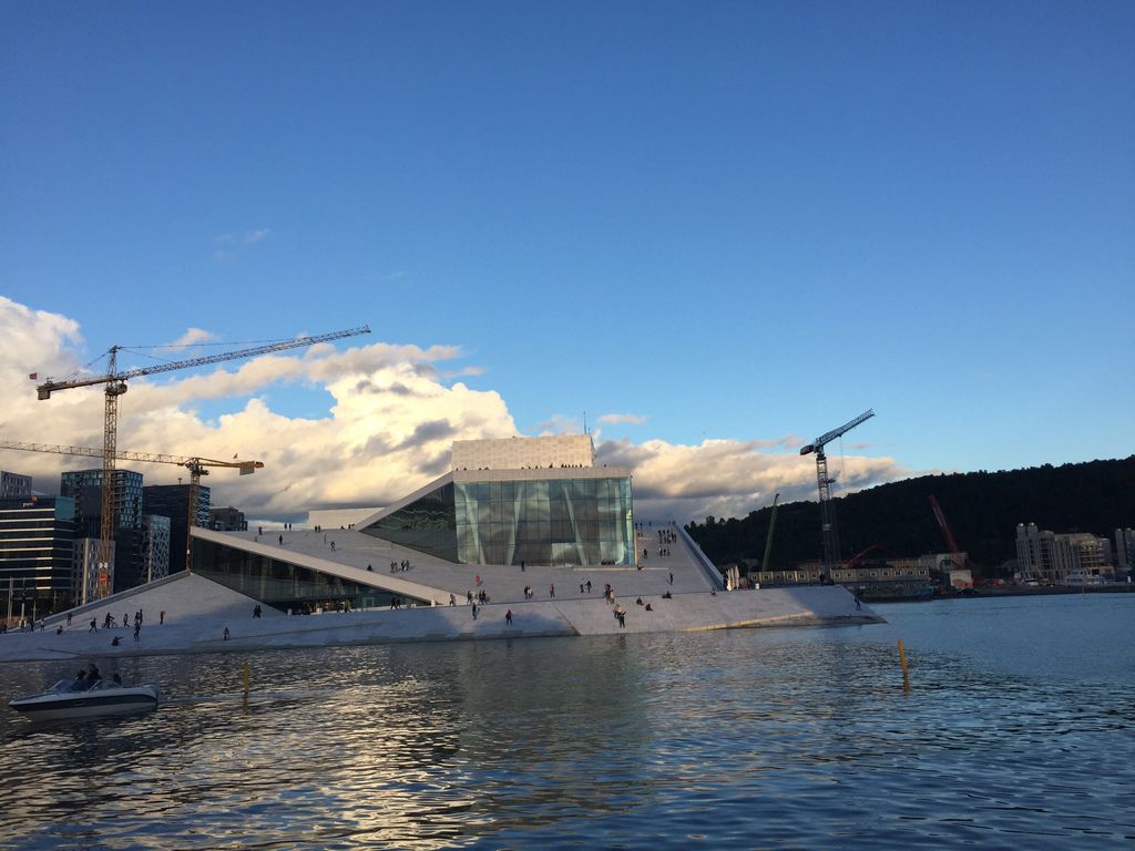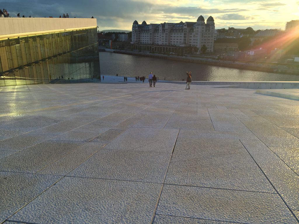 後來,學姊提議吃飽後到海邊走走,順便趁今天夕陽正好,去看看鼎鼎大名的奧斯陸歌劇院