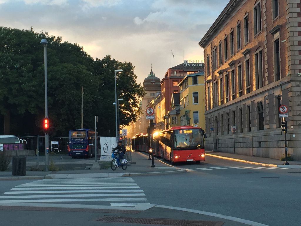 奧斯陸街上常見的有紅色或綠色的巴士,和藍色的路面電車。