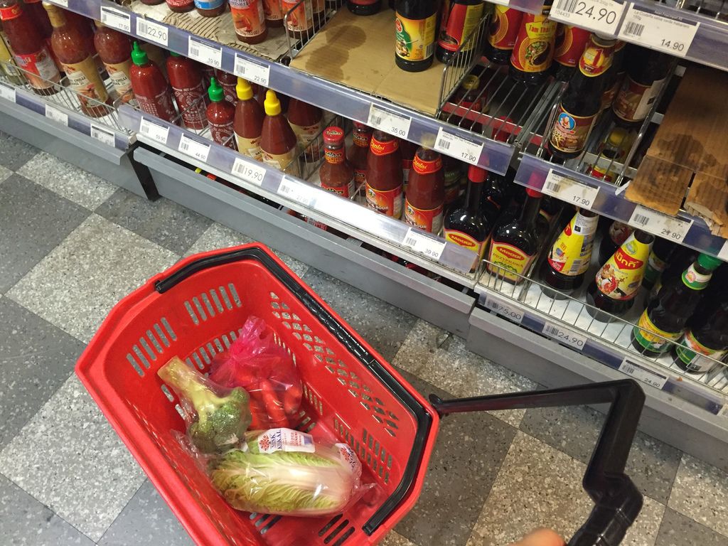 問了他們還有沒有食材要補後,主音幫忙備料,我和姊姊去附近周日唯一有開的EXTRA超市採買,而且還因為漏東漏西,連續跑去買了三次,店員看來有點傻眼又不耐煩
