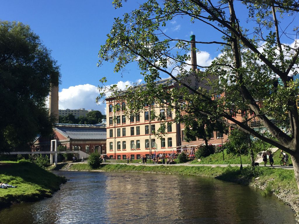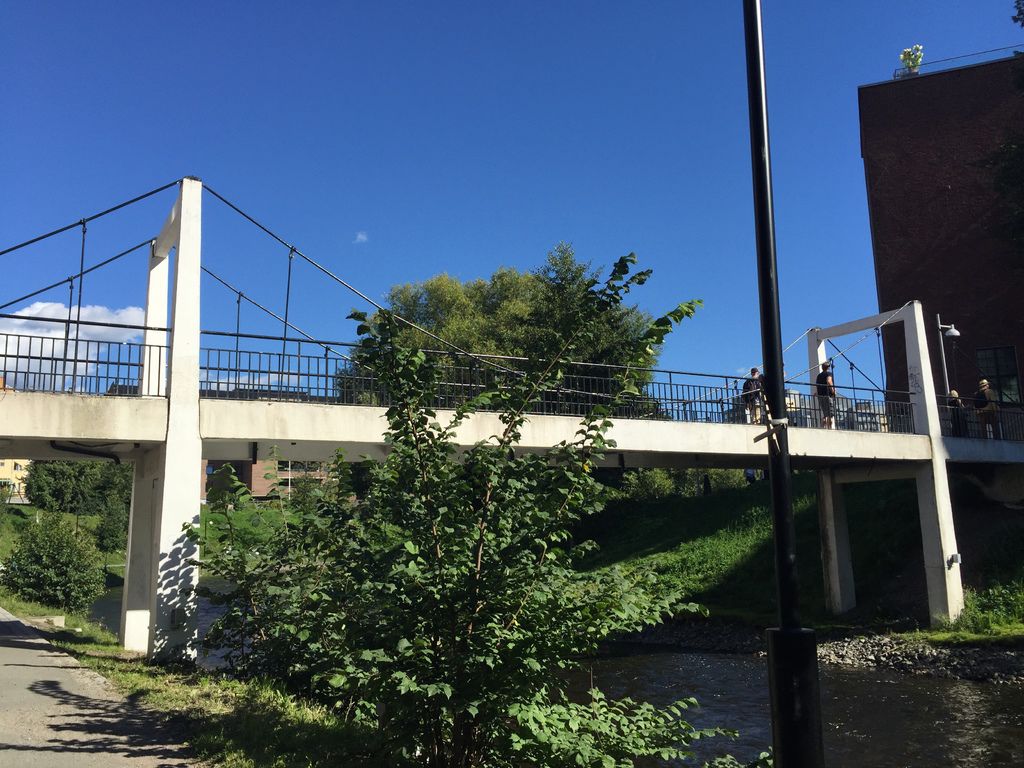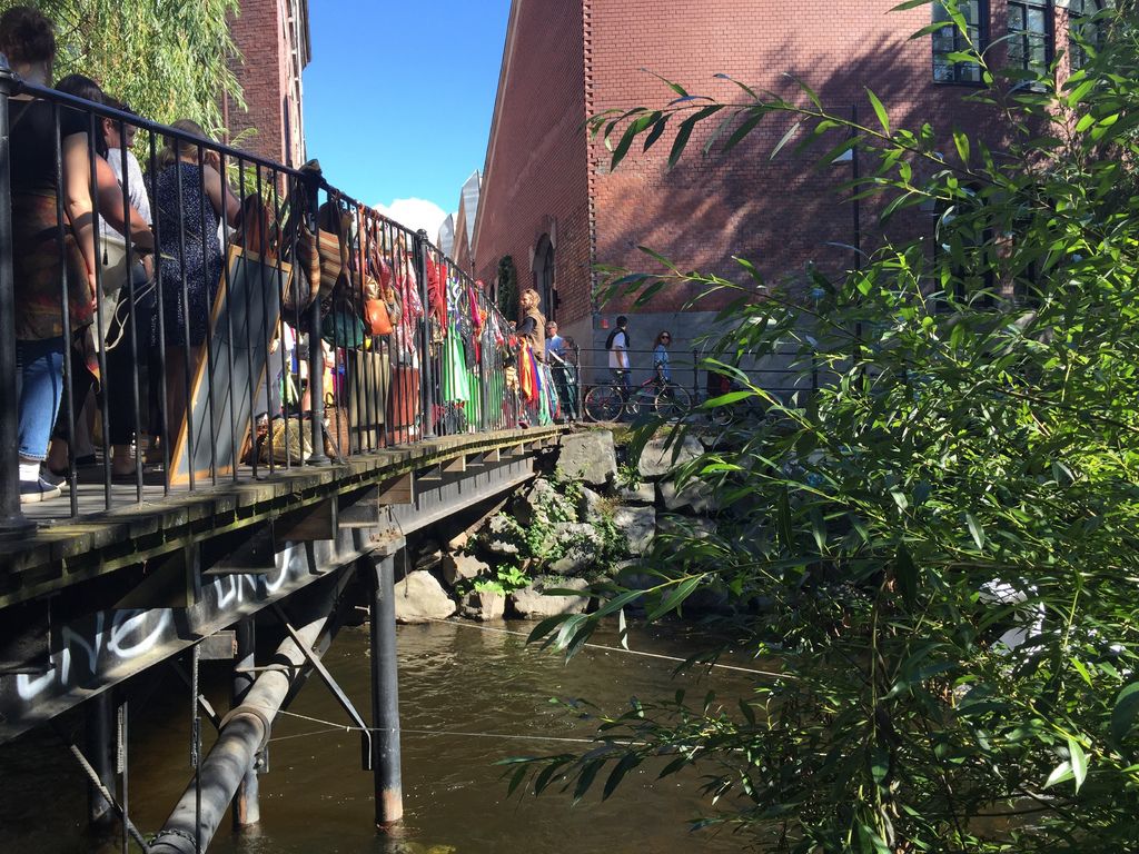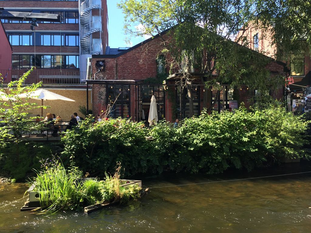 走出建築物,外面是一條名為Akerselva的河流,小橋上也有不少小攤位。