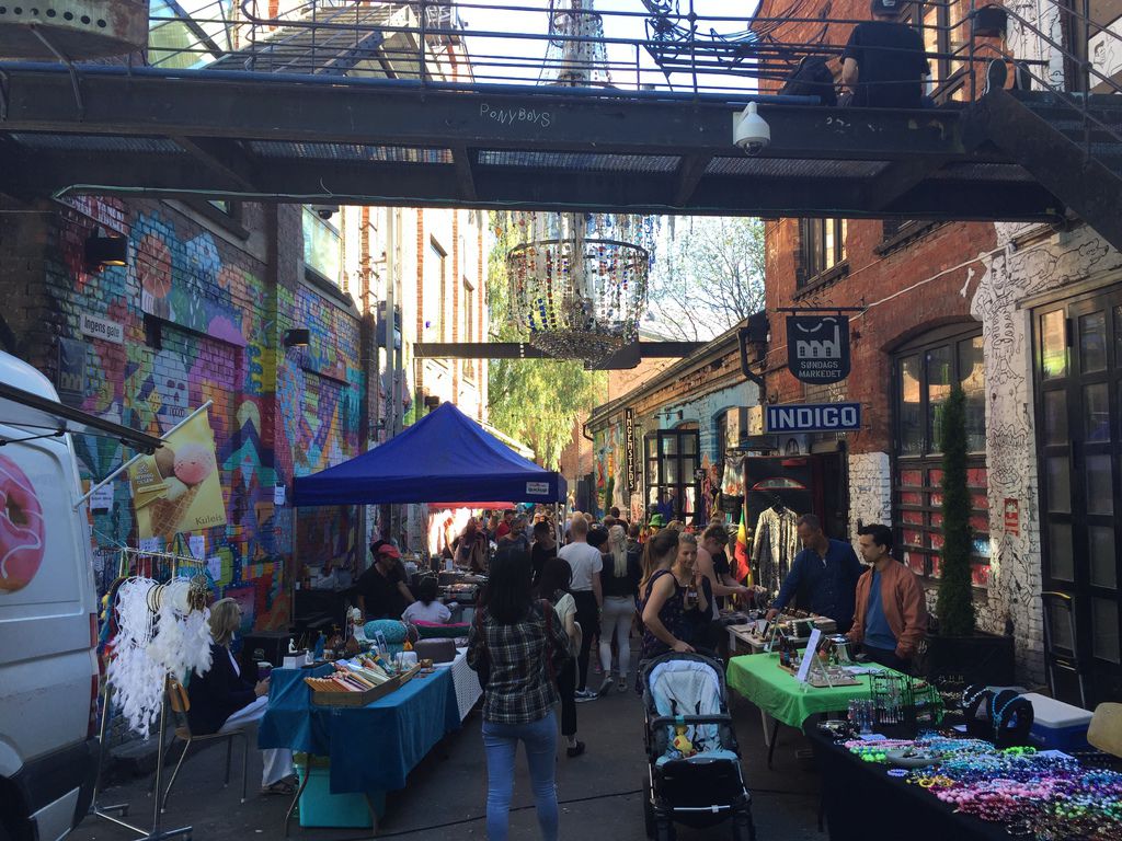 和Akie站在河畔朝對面望過去,露天餐廳生氣盎然,加上市集攤販繽紛的色彩,讓整條河邊充滿活力,卻又保持著非主流的特殊氛圍。感覺Blå一帶是一些次文化聚集的場域,也是懂得欣賞的人會前來聚會的秘密花園。這個周日午後河畔的風景,真捨不得讓人移開目光啊~我們兩人這麼說著