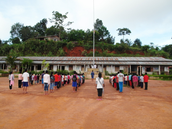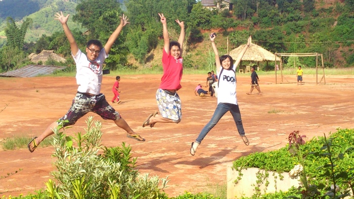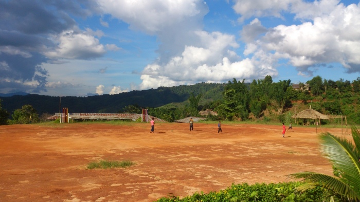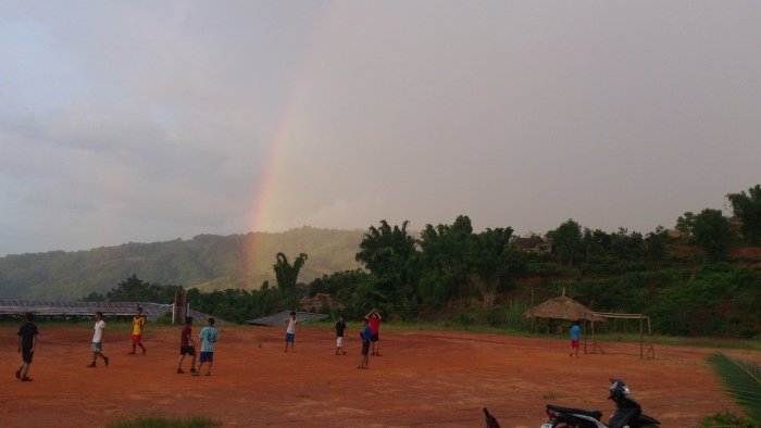 下午孩子們踢足球時,下了場微微小雨。雨後的天空,特別清澈、特別遼闊,陽光與水珠在漸次層疊的山巒那頭,畫出了一道非常、非常美麗的彩虹。來到萊果旺,什麼大風大雨、炙熱豔陽、星星彩虹,我們全都覽遍了。和大自然一同呼吸這國家邊境的氣息,和孩子們一同開心歌唱,這應該就是種最純粹也最簡單的幸福吧。