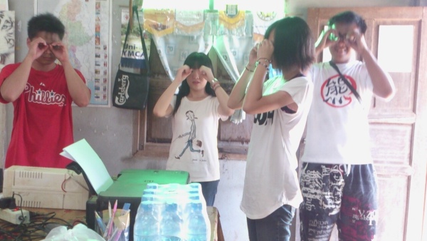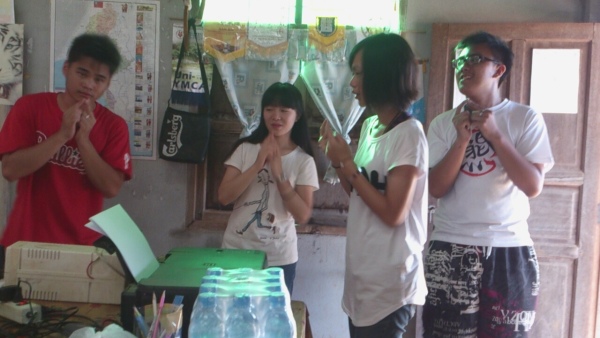 吃完飯後,由於晚上有離別晚會,所以下午我們也不能閒著。看了寒假的志工紀錄影片發現,哇嗚,我們必須把這晚會搞得很有一回事啊!(笑)於是乎,整個下午我們一群人幾乎都坐在老師辦公室裡準備表演節目、安排流程,基本上晚會就是孩子們的成果展加上我們的表演。起初,我們只知道勢必得來個活潑的唱跳,卻想不出要以什麼歌為主題比較恰當。帶來的手機、記憶卡、讀卡機、傳輸線、富貴的USB都用上了,甚至還向校長借用了他的Macbook,就是為了在有限的歌單中找到表演的歌曲。