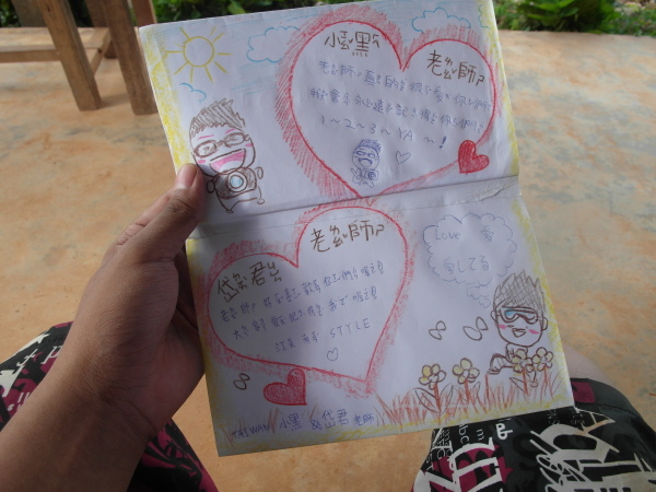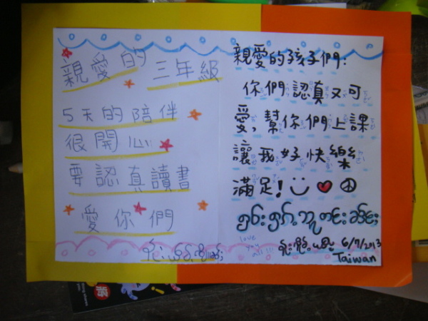 這些是我們大家寫給班上小孩的小卡~姐還在正反面畫了傣族旗幟和台灣國旗耶!