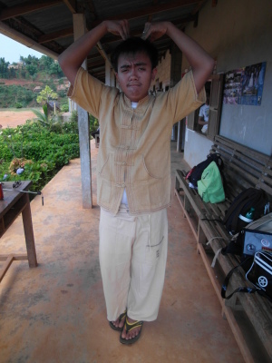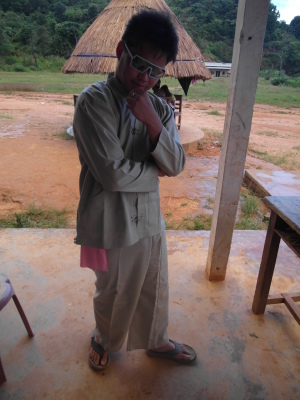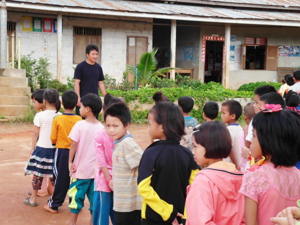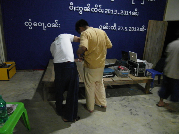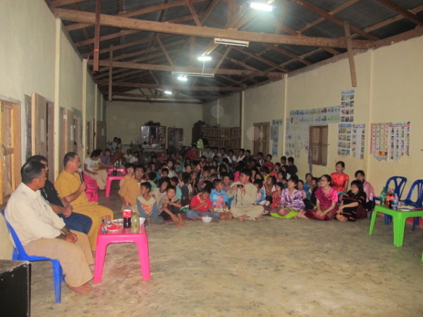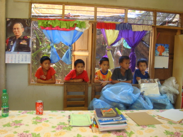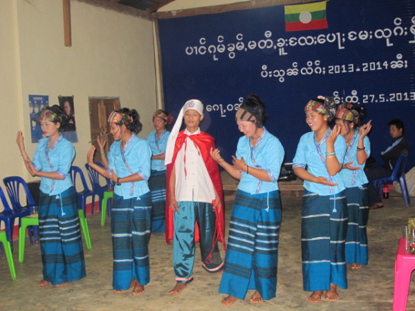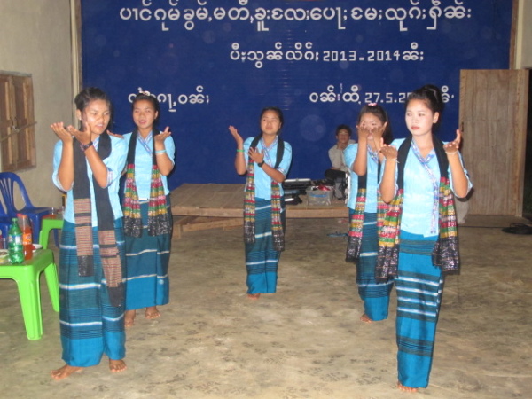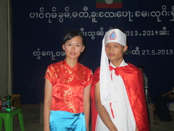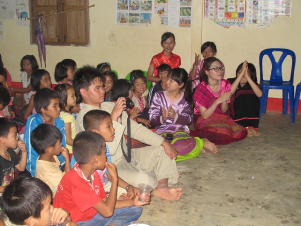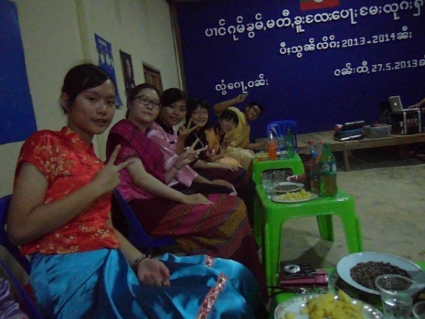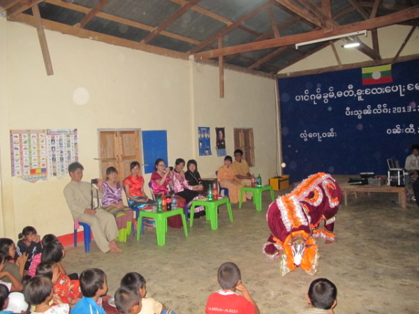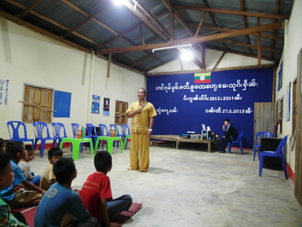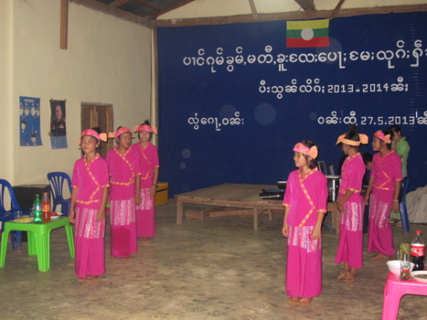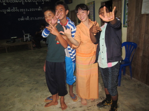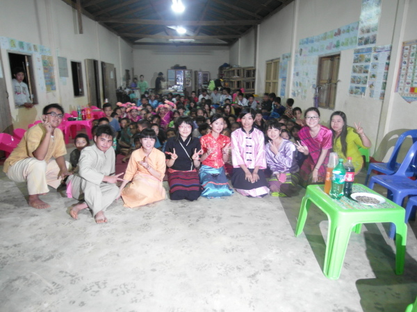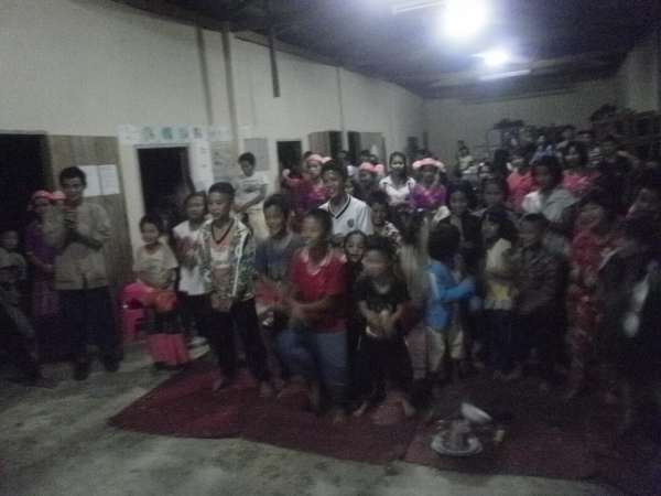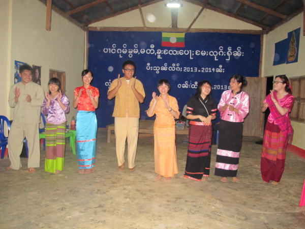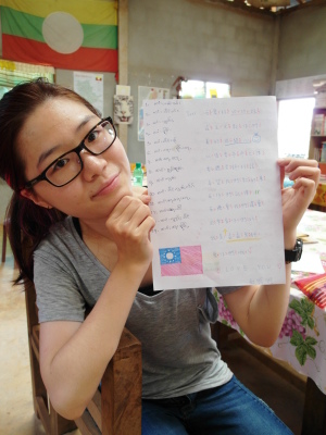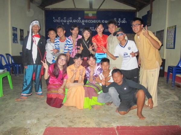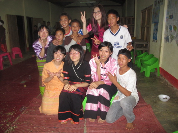 之後,等到村長、理事長(應該吧,我根本聽不懂傣文XD)等人都到齊後,時間大約是晚上七點半,校長就開始主持晚會,並做引言。沒想到,校長才開口沒講幾句話,我的眼眶就濕了!(搧)他用英文語重心長地告訴我們:「很高興你們來到萊果旺教導我們的學生讀書。在我們的國家,我們已經從你們身上學到了有關人權的知識,而希望我們能擁有與台灣人相同的人權。因為你們擁有人權,所以如果有了錢和護照,你們就能去任何地方。但是在這裡,即使擁有自己的財產,我們仍然哪裡都去不了,因為我們並沒有身分證和護照。這是我們所面臨的困境。然而,希望將來我們能享有和你們一樣的人權,我們的孩子們也能像你們一樣。謝謝你們。希望你們回到台灣後,還能多來這裡幫忙教書,並利用國家的教育資源去學習並幫助更多的人。」嗚嗚,真是一位明理且有智慧、有想法的校長。得知孩子們果然和我先前所知的一樣,是無身分者後,心裡更難過了。原來,說到底,我們每個人的「存在」都是要被世界「認可」過後才真實存在的嗎?因為沒有身分而產生的種種限制與困境,是我們難以想像的。即使如此,只要一想到萊果旺孩子們不知在何處的未來、想到他們或許一輩子都看不到外面的世界,想到他們天真稚嫩的笑容、想到他們比誰都還要認真讀書的模樣……鼻子就覺得痠痠的,眼眶也在發熱。好想、也太想太想為他們做些什麼啊。