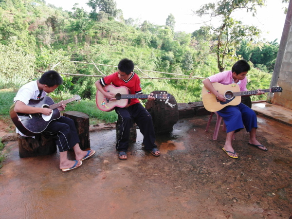 時序很快地就來到傍晚五點,我們的晚會準備也差不多告了一個段落,音樂、節目流程都安排好了!我坐在辦公室外的長椅上,教仔攢和一些幼幼班小孩玩黑白猜。比劃了好久,他們還是似懂非懂,好像懂動作了,卻搞不懂怎樣才算輸或贏,哈哈哈但是小朋友們還是玩得超開心啊!清脆的笑聲不絕於耳,讓我的嘴角也止不住地上揚著。姐她這時也和小胖、平平等人玩了起來,看著地圖問他們萊果旺在哪裡呢?但是,果然萊果旺只是一個存在於邊境的小地區,是地圖上沒有的一塊樂土,看著小胖和平平怎麼找也找不到,心裡忽然就湧現了一股酸楚與哀傷。但幸好,他們還找得到台灣在哪(雖然花了很長一段時間,哈哈),而我們也知道,地圖上沒有的萊果旺,將永遠存在我們的心底。