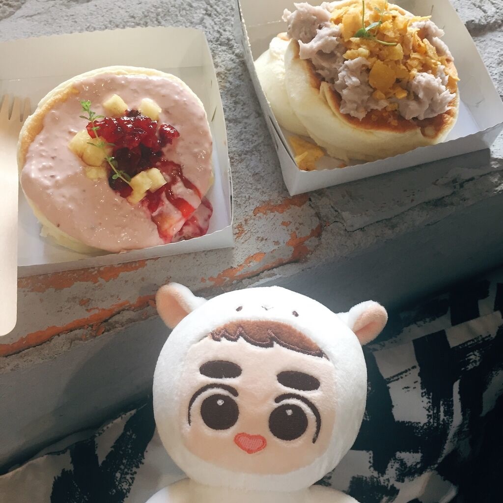 第二張是「魚&吉」舒芙蕾鬆餅,芋頭口味&老闆隨便做口味(基本上是莓果果醬味),也還算不錯,芋頭不會很甜,莓果醬酸甜好滋味~~