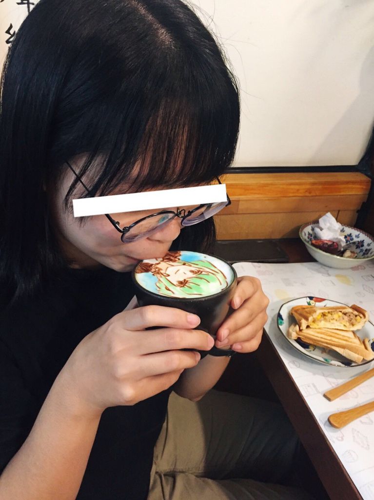 店主動作超快嗚嗚,只花大概五分鐘就做好一杯吧,功力太強了。即使給我紙筆,十分鐘我也畫不出加洛里歐的美顏QQQ
