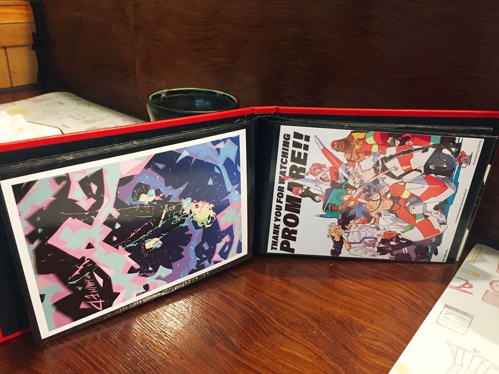後來店員把集卡冊還給我,並指著圖上的プロメア四個字確認這是不是作品名,我說是,他說好~那他自己 google 找圖片參考。