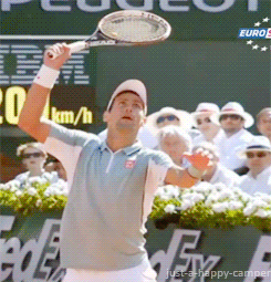 另一場十六強賽是啾扣 v 德國人Kohlschreiber。之前也有提到,Kohlschreiber是讓我覺得蠻穩定的(停留在他現在這個名次XD)、打球也蠻順眼的一個傢伙。果然,他從Novak的手中先拿下的第一盤!這場我沒看,但大家都知道(?),Nole在前一天接獲了網球啟蒙恩師Jelena Gencic逝世的消息,想當然爾他的心裡一定很不好受QQ 但是,職業運動員畢竟還是職業運動員,即使悲傷仍得試圖讓自己從情緒中找回狀態。最後,Nole不意外的拿下這場比賽,並且說到他要在法網為Gencic而戰!