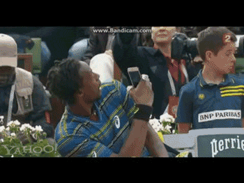 前者的行為其實我覺得很有趣,哈哈。我有觀看那場比賽,當時休息時刻,氣氛其實還蠻歡躍輕鬆的,Monfils才很開心的拿起手機拍攝。事後雖然有被指出不恰當,但是其實當時Monfils是有經過主審同意的喔。不過另一位Stakhovsky,啊啊因為有點ㄘㄝ歡,就被罰了2000美元。賽後有媒體對這類事件做了報導,像Roger就認為這樣不恰當,因為電子通訊產品可能會有「選手接獲教練在場邊指示」的疑慮。(the players might engage in receiving coaching ideas through their mobile devices) 賽會也覺得基本上攜帶電子通訊產品確實不妥,尤其還拿出來在比賽進行時使用,以後可能會禁止。