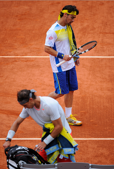 然而,Brands這樣積極的打法,也是有山窮水盡(?)的一天的。積極進攻,失誤本來就會相對增加,而一旦失誤數量超過致勝分,那比賽很可能就會情勢逆轉為對自己不利的局面了。關於這點,從第二盤Rafa拿下tiebreak後,Brands的失誤的確就變多了,況且紅土地本來就比較耗體力,不是每個人都像Rafa一樣蠻牛啊XD 在第三、四盤,Brands都是因為先被Rafa破了第一個發球局,才丟掉整盤的。否則,撇除這些不談,這兩隻的發球局都還算是能穩穩保住,致勝分也都精采;尤其是Rafa,越打越順,穿越永遠是強項哈哈,後來出現了好多次love game喔。