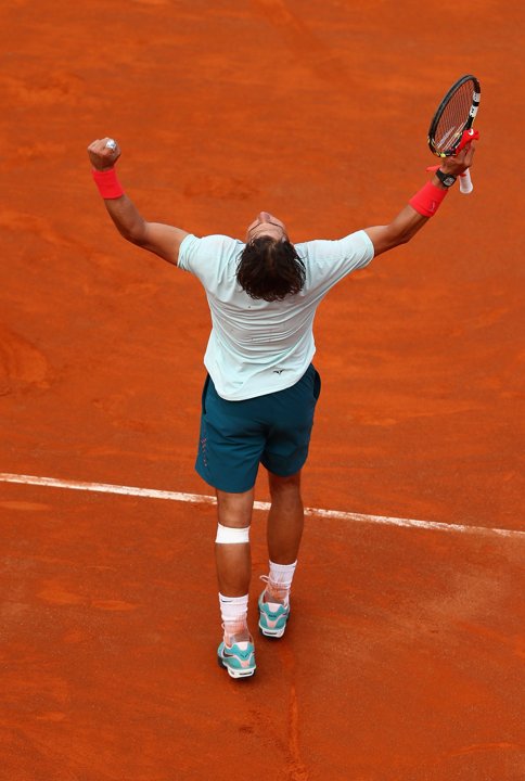 然而,整體而論,Rafa的表現確實比Roger好上太多。一發和二發贏球率都差不多在七成,Roger的則分別只有五成和三成;最致命的是,Roger整場比賽出現了32次非受迫性失誤,是Rafa的四倍之多。Rafa從頭到尾都很穩定,最後還握有三個冠軍點,只花了一小時又八分鐘,6-1, 6-3,超出外界預期的輕易奪冠。(「輕易」這詞好殘忍QQ) 這是Rafa在羅馬大師賽的第七個冠軍,生涯第24個Master Title,也是在復出後的第八場決賽、第六座冠軍獎座。聽起來的確是非常驚人,連Rafa自己也這麼說。