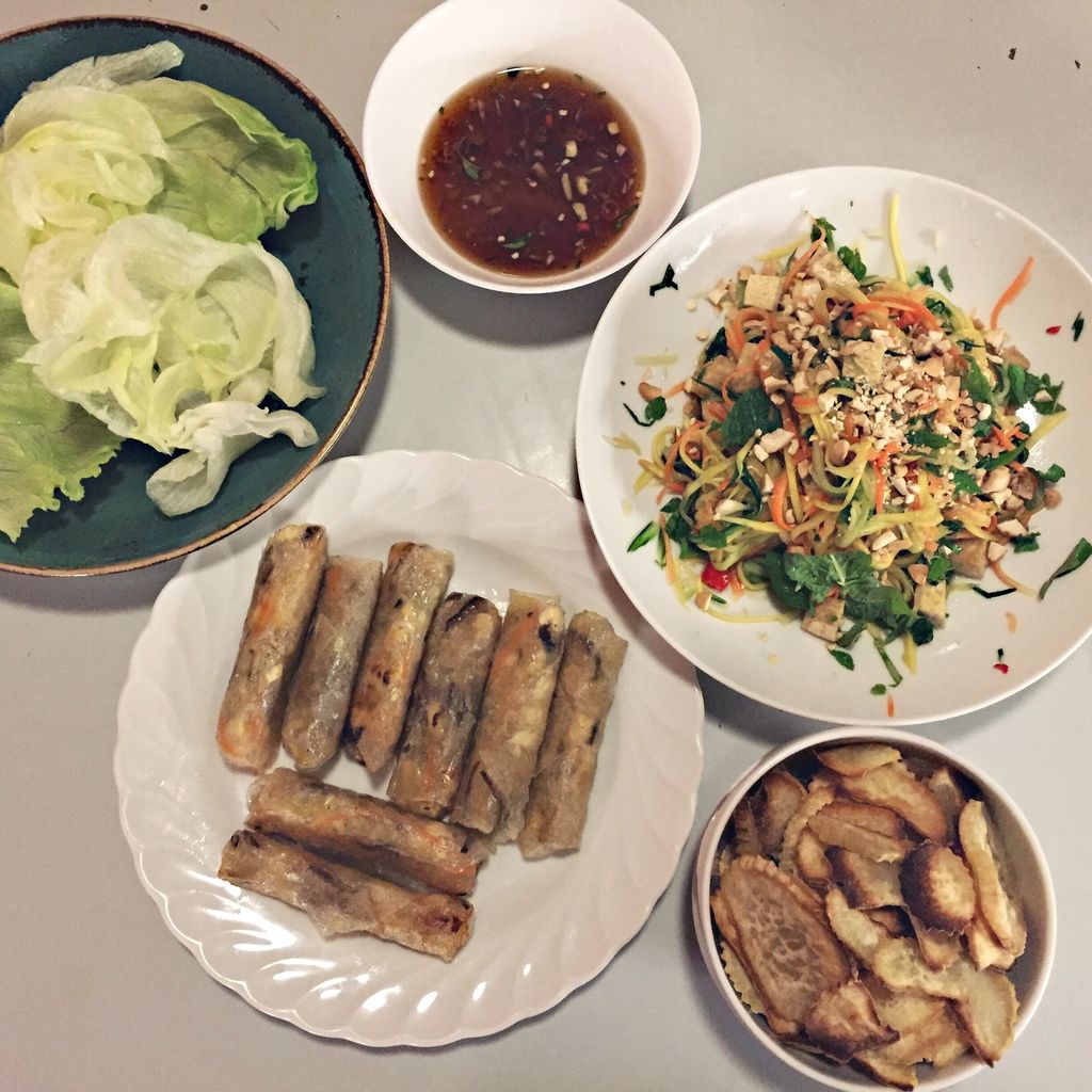 My Vietnamese friend Phuong taught me how to make authentic Vietnamese spring rolls and salad. What’s best was that she made them all VEGAN!!! 😭😚