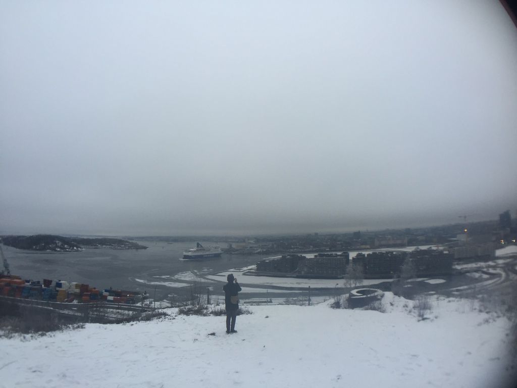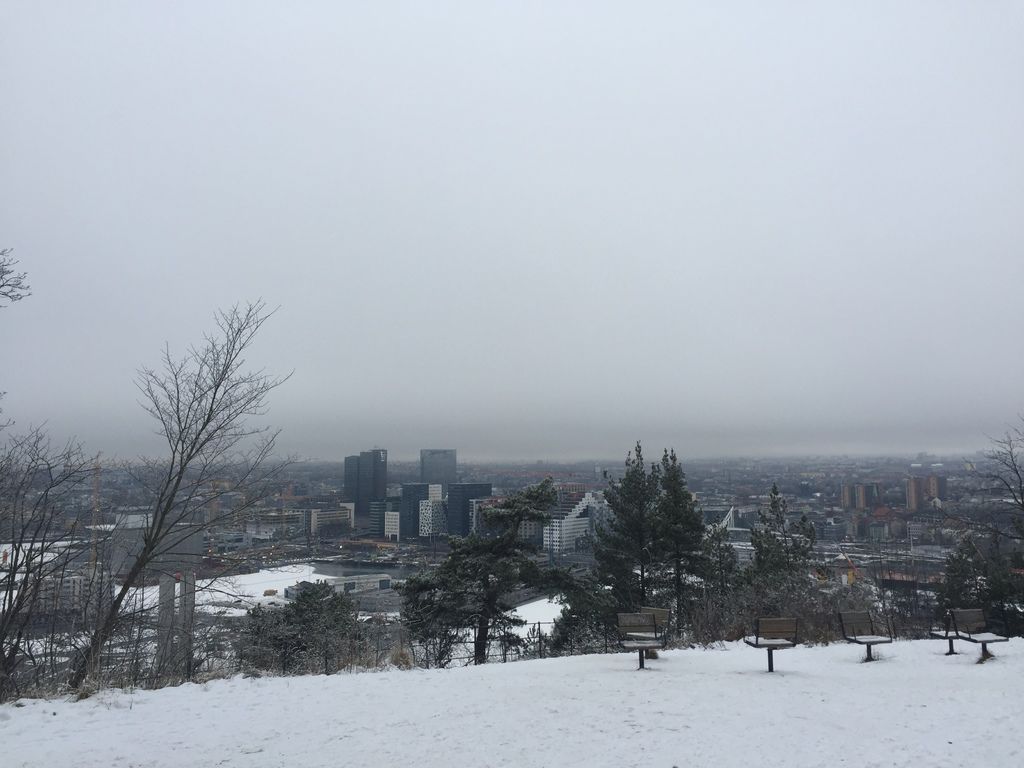 於是我們就站在旁邊一個瞭望處,遠遠地看著DFDS的船破冰出航,看著奧斯陸港口的景色,結束今天的公園之旅。