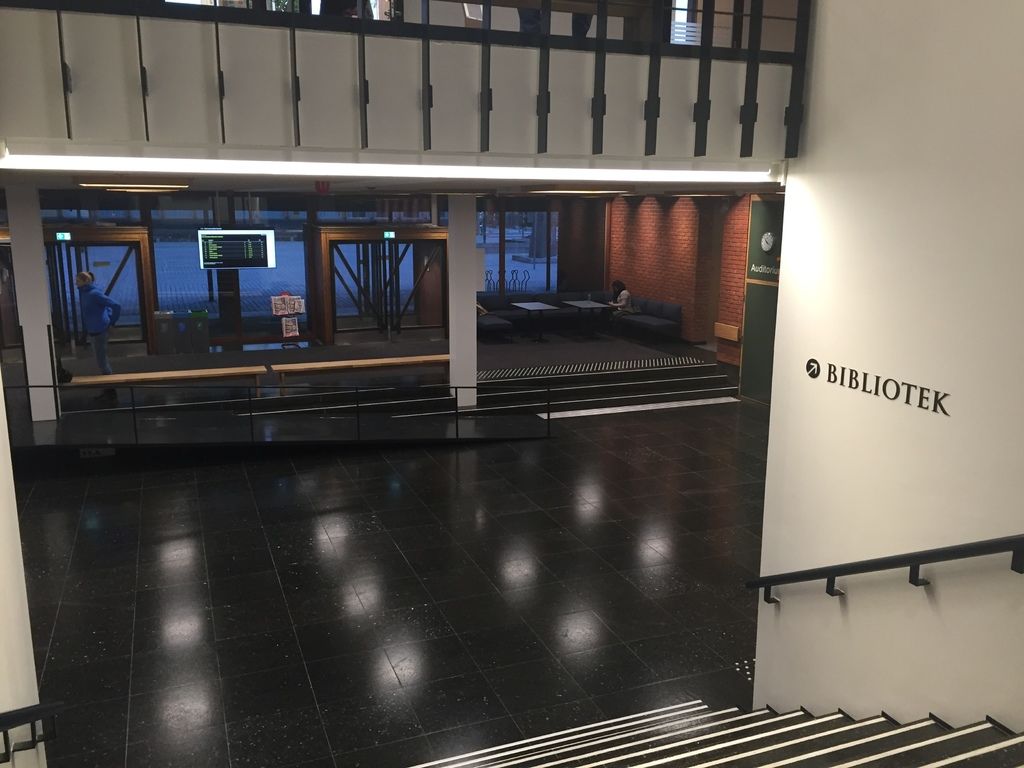 這是我這學期禮拜一挪威社會文化課的建築物內部,有個小圖書館,在ㄇ字型大宅院同邊的附近。(擅自幫學校建築物群亂取名字)