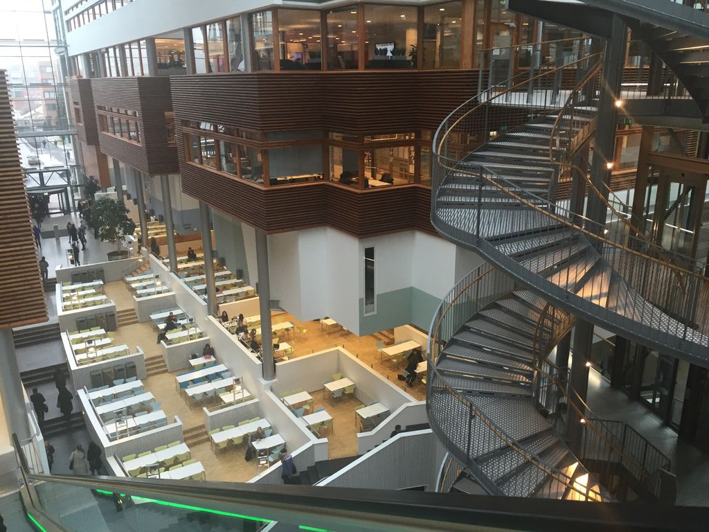 BI整個學校就只有一棟建築物,與其說是university不如說是college。不過裡面實在非常有設計感,樓梯各種交錯、還有一堆樓中樓,我以為自己來到霍格華茲、走在會移動的樓梯上XD