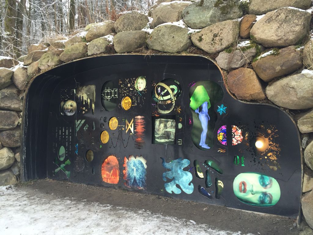 沿著公園內的斜坡步道走去,路旁總是會隨機出現一些裝置藝術,大部分都蠻莫名其妙、現代藝術到讓人費解。如上圖這個會講話、發出怪聲,並顯示一些裸女啊宇宙星體啊怪臉啊的面板就是一個無人理解的藝術品。(半夜路過一定嚇死)