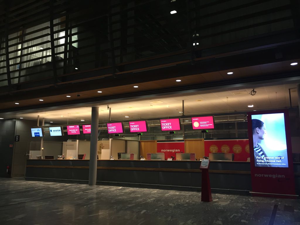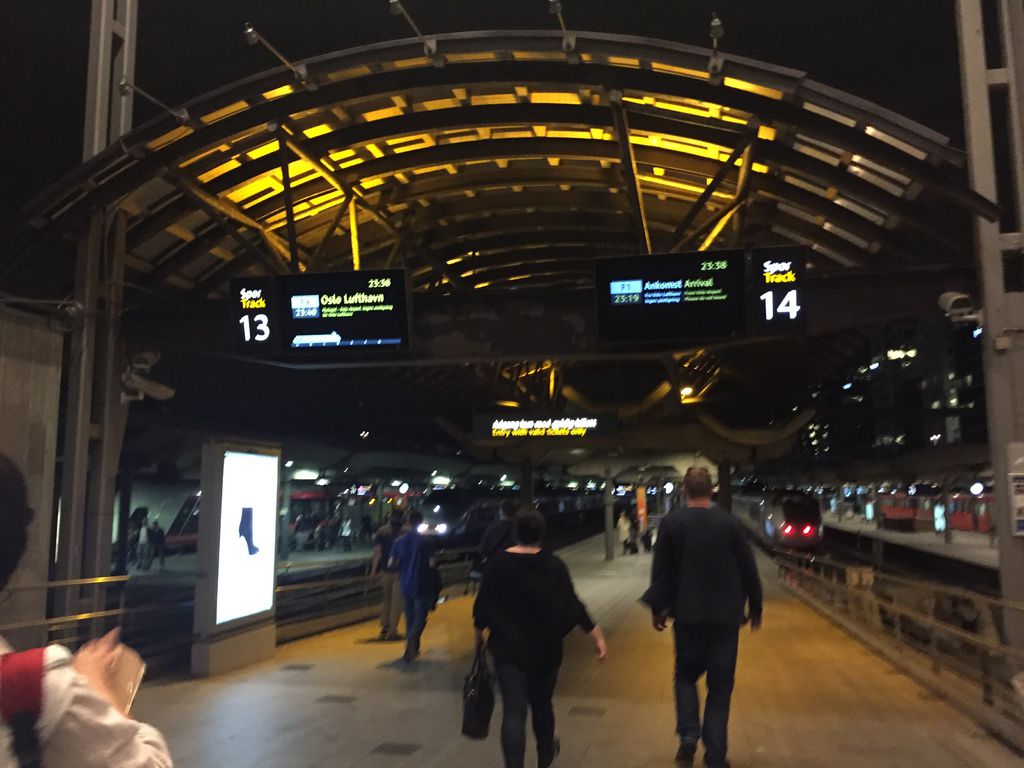 總之,在中央車站歷經這樣一番小小波折後,我們總算搭上flytoget,抵達午夜的奧斯陸機場啦!