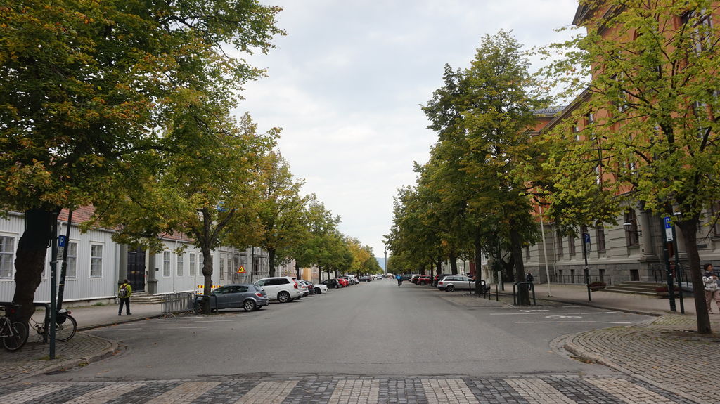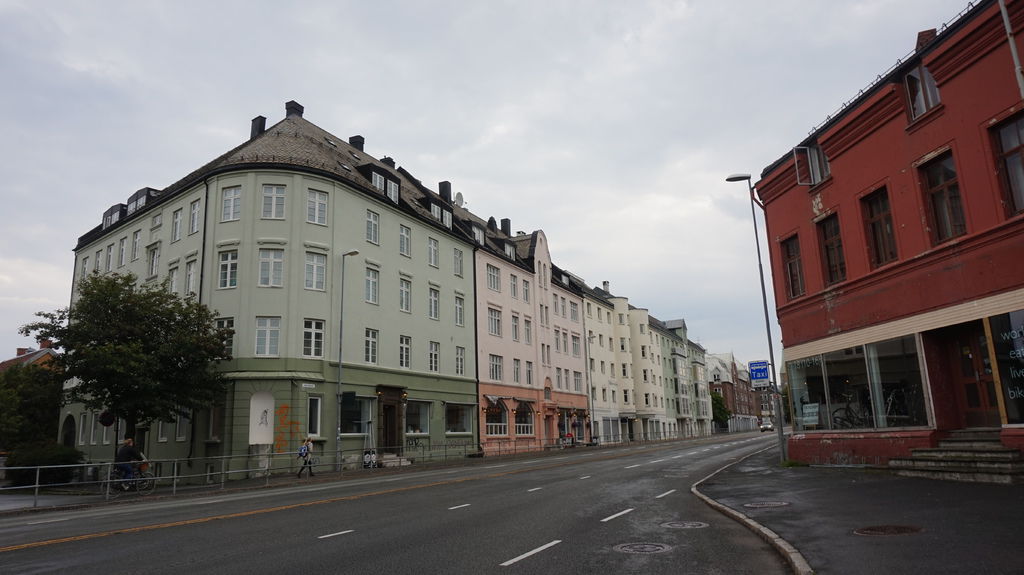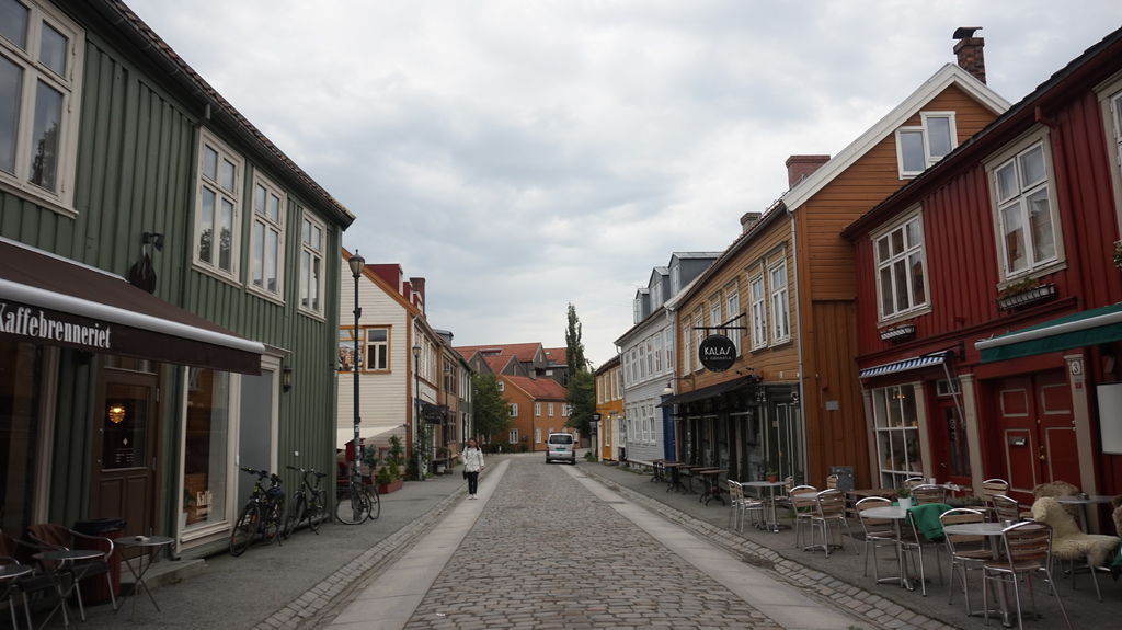 我們因為太早抵達Trondheim了,時間大約是早上八點多而已,發覺街上幾乎沒有什麼行人。而且我也是到這一刻才明白,為什麼大家都會說「唉你們奧斯陸已經算是人多了、很市區耶」。Trondheim給人的氛圍一樣是挪威式的樸素寧靜,相較之下卻比奧斯陸少了很多緊湊的步調,或是摩肩接踵的人群。