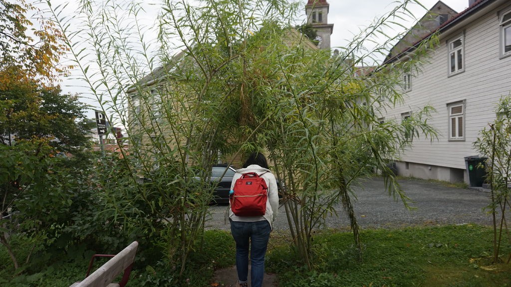 剛開始只是飄毛雨的時候,我們就打算前往附近的挪威科技大學,但誰知路程走一半,忽然轉變為暴雨!