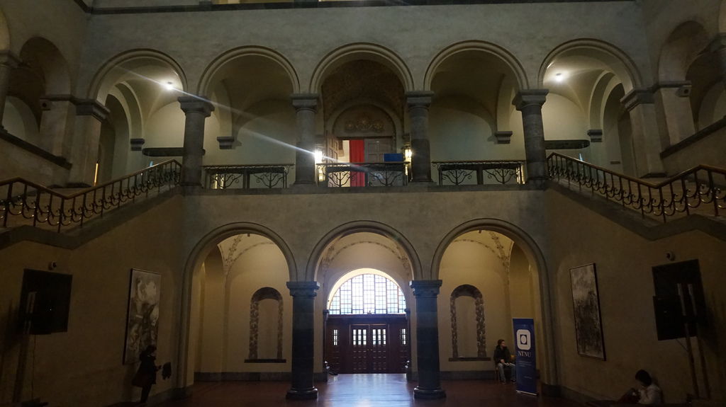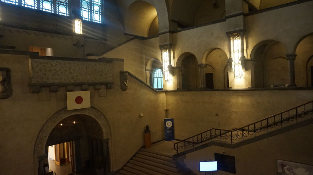 在挪威科技大學,我們就只是進去它如古堡般的校舍休息、讓腳呼吸一下(喂),然後吃著剛剛買的一些巧克力,意思意思地看看裡面的裝潢,之後就離開了。