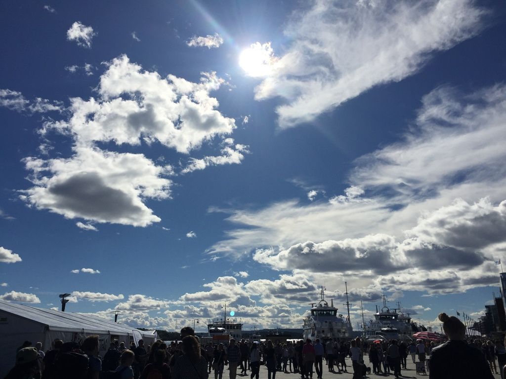 下午則是和張柔一起去了奧斯陸一個小型的音樂祭GranittRock,要搭到捷運近底站,還要走20分鐘的路,包括一個長長的陡坡。抵達音樂祭現場時,發現那邊地勢像是個小盆地,要走下去才是舞台與攤販區。天氣超好!(但風還是涼颼颼)
