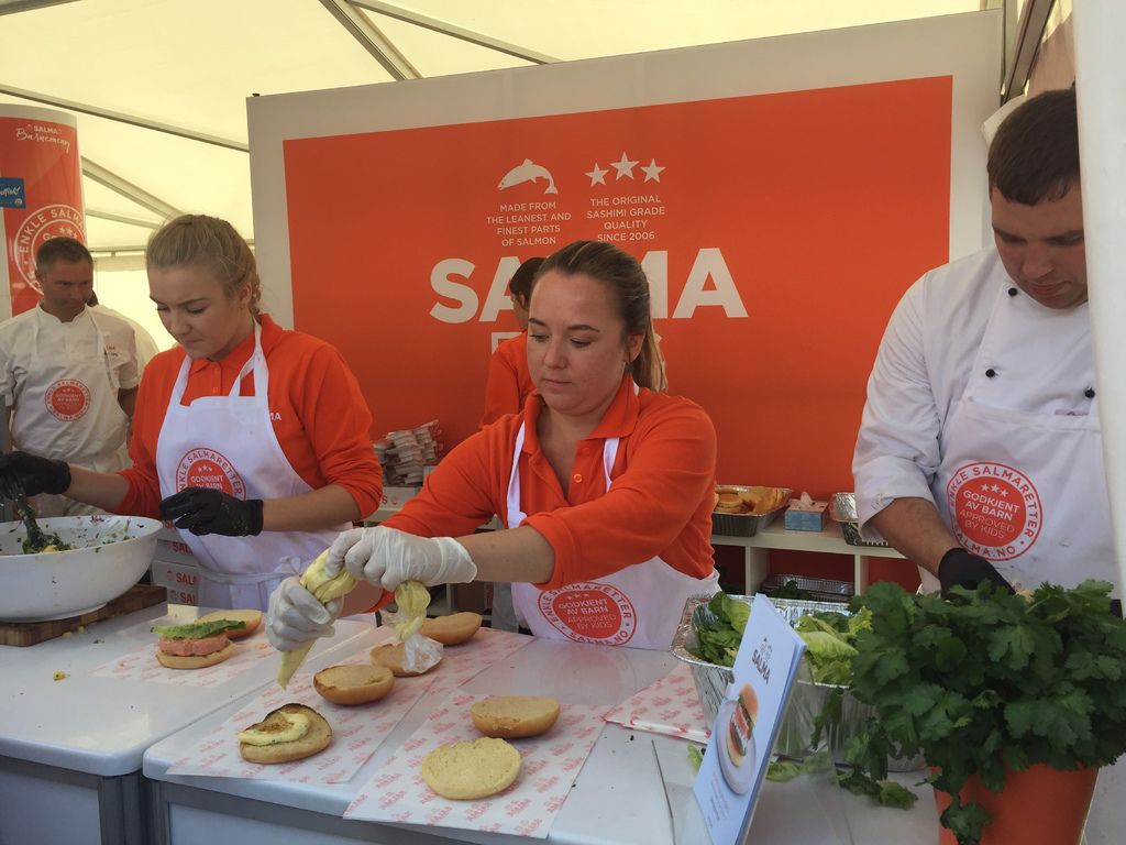 但美食節中,最熱門的食物之一大概就是這攤鮭魚!