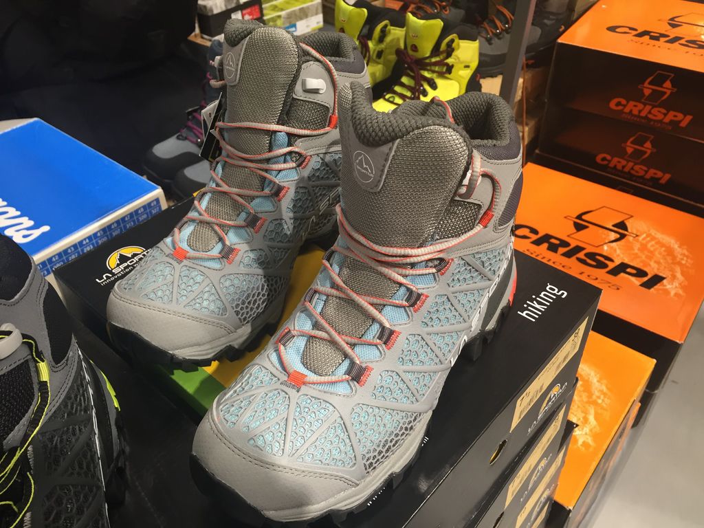 在登山鞋區,我一眼看中的是這雙義大利運動品牌La Sportiva的冰河藍登山鞋,原因無他,我很膚淺,因為它很美啊!!!