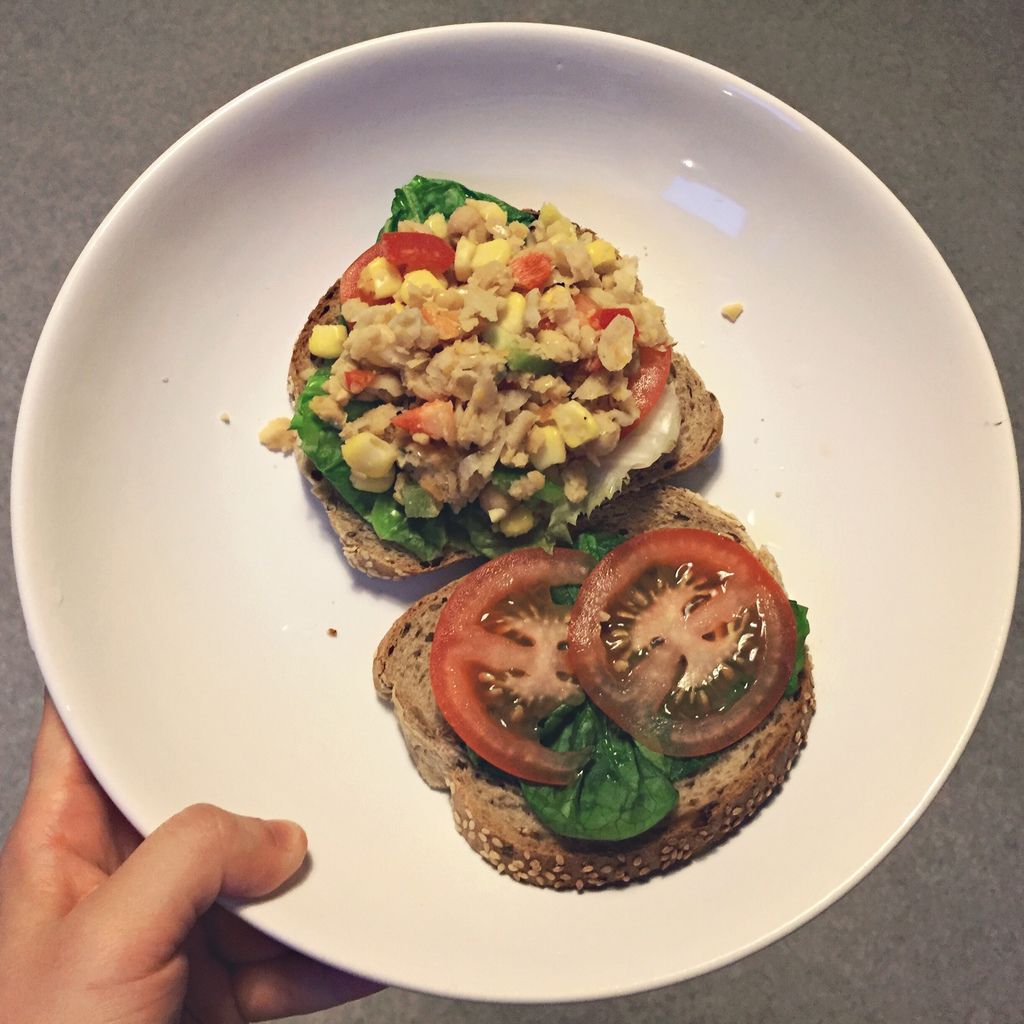 昨天用鷹嘴豆泥做了偽鮪魚沙拉,常備在冰箱中,早餐或午餐帶便當拿來做三明治好方便啊!!!