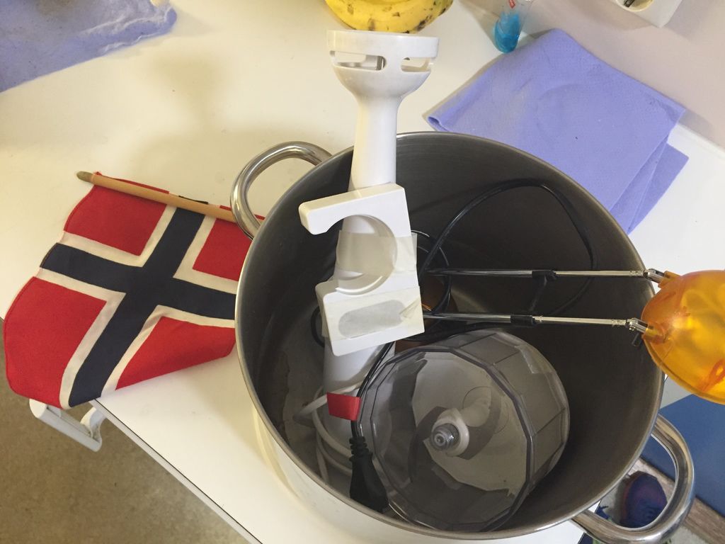 於是我就免費拿到了挪威國旗、大鍋子,和我最需要的食物調理棒與超亮檯燈!!!