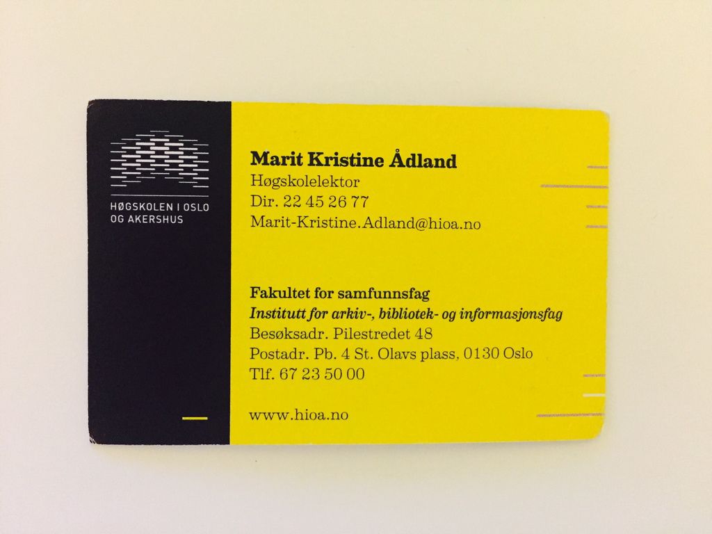 只因為,原來她是HiOA(Høgskolen i Oslo og Akershus)檔案與圖資系的助理教授!