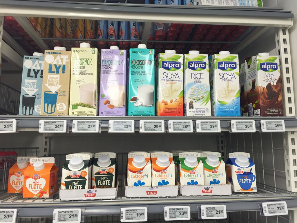 重訓出來後,在學校的Bunn Pris超市看到更多種類的植物性奶類,右邊的巧克力豆奶是我下次目標!